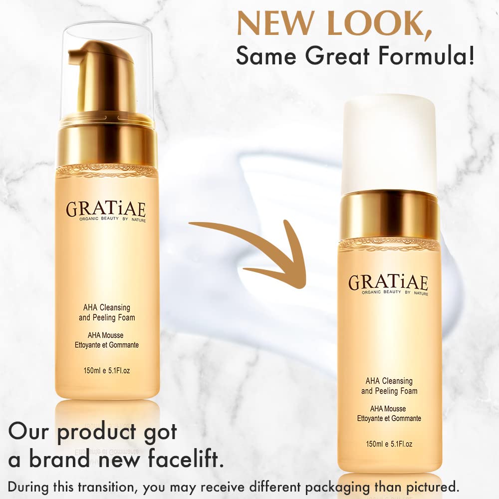 - ORGANIC LUXURY: GRATiAE ORGANIC BEAUTY BY NATURE AHA Cleansing and Peeling foaming face wash is a very mild and gentle, perfectly balancing rich and creamy facial cleanser. This dermatology tested glycolic acid face wash helps re-balance skin, removes dirt, grime, oils, pollutants, and makeup without disrupting the skin's moisture barrier. Hydrates skin while cleansing, does not dry out the skin.