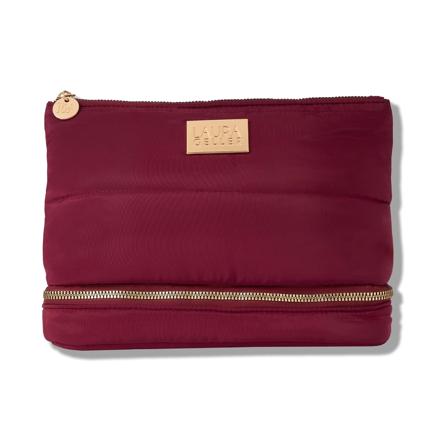 LAURA GELLER NEW YORK Quilted Makeup Bag with Brush Case, Burgundy - Toiletry Bag Organizer for Travel - Large Capacity Full Size Makeup Bag - Easy to Clean