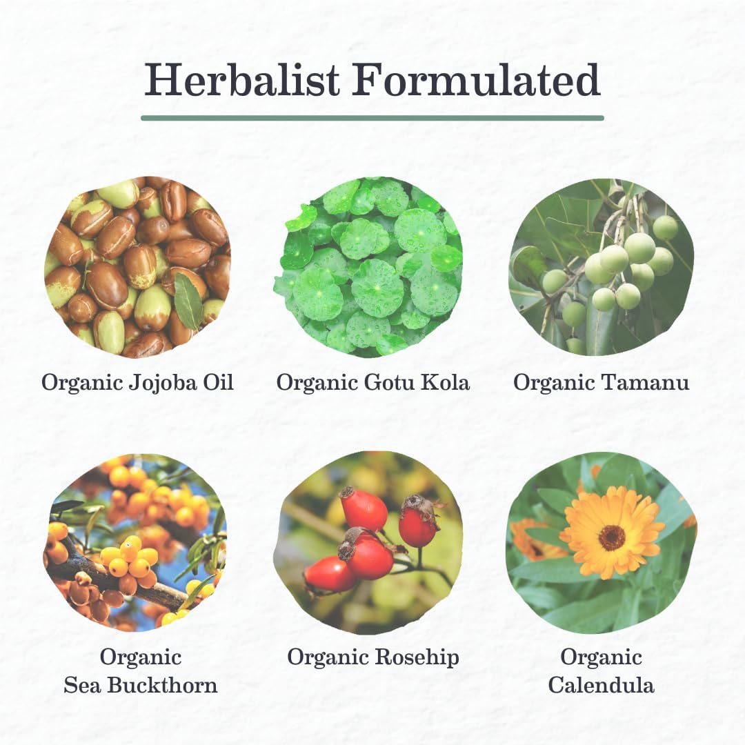 - DERMATOLOGIST TESTED: Dermatologist tested for irritation, this cream is a well-researched blend of organic herbs and oils, including organic tamanu oil, sea buckthorn seed oil, calendula, and gotu kola.