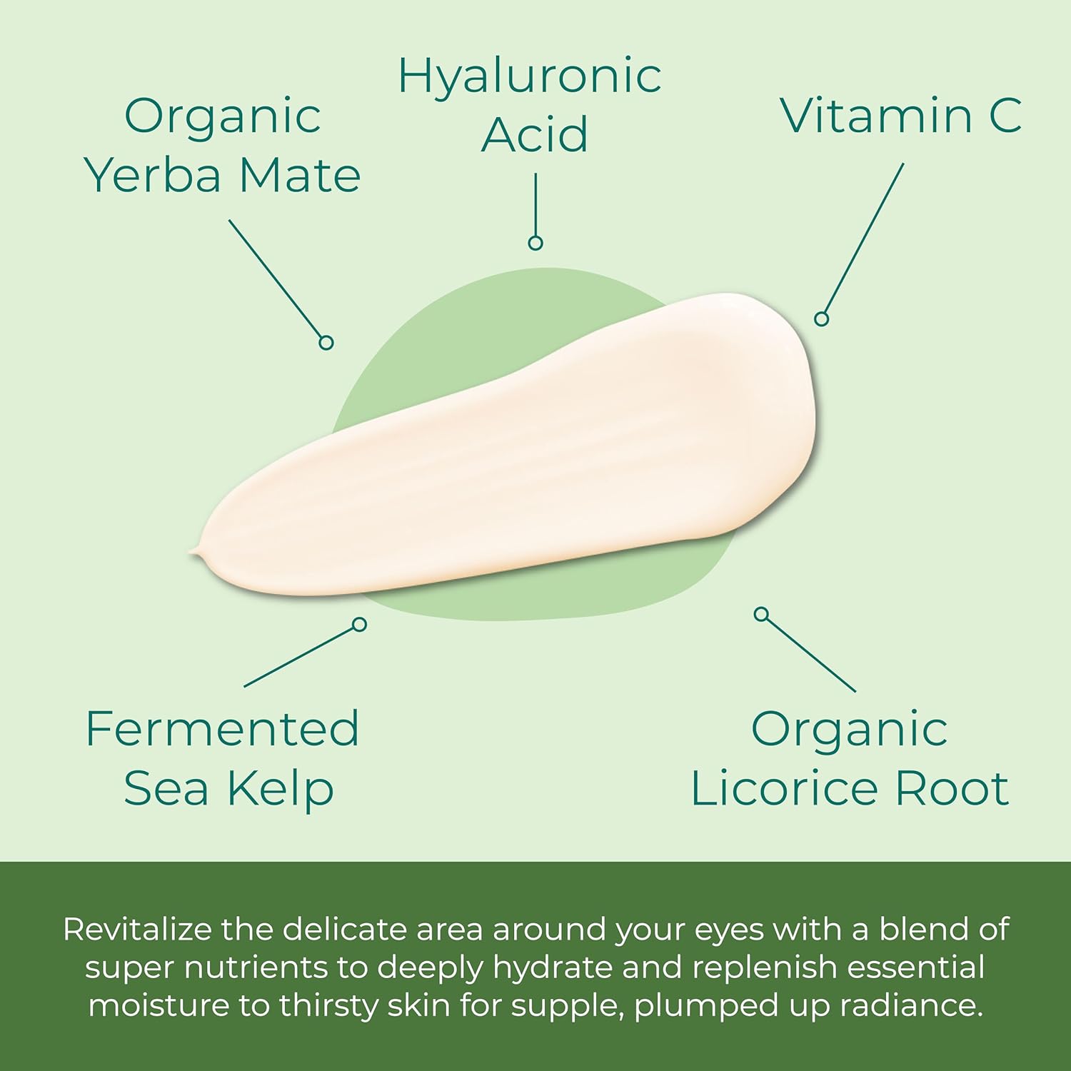 - WAKE UP YOUR TIRED EYES - Restore that youthful glow with a synergistic blend of Yerba Mate, Hyaluronic Acid, and Kelp Extract to revitalize the eye area, for a more rejuvenated and refreshed appearance.
