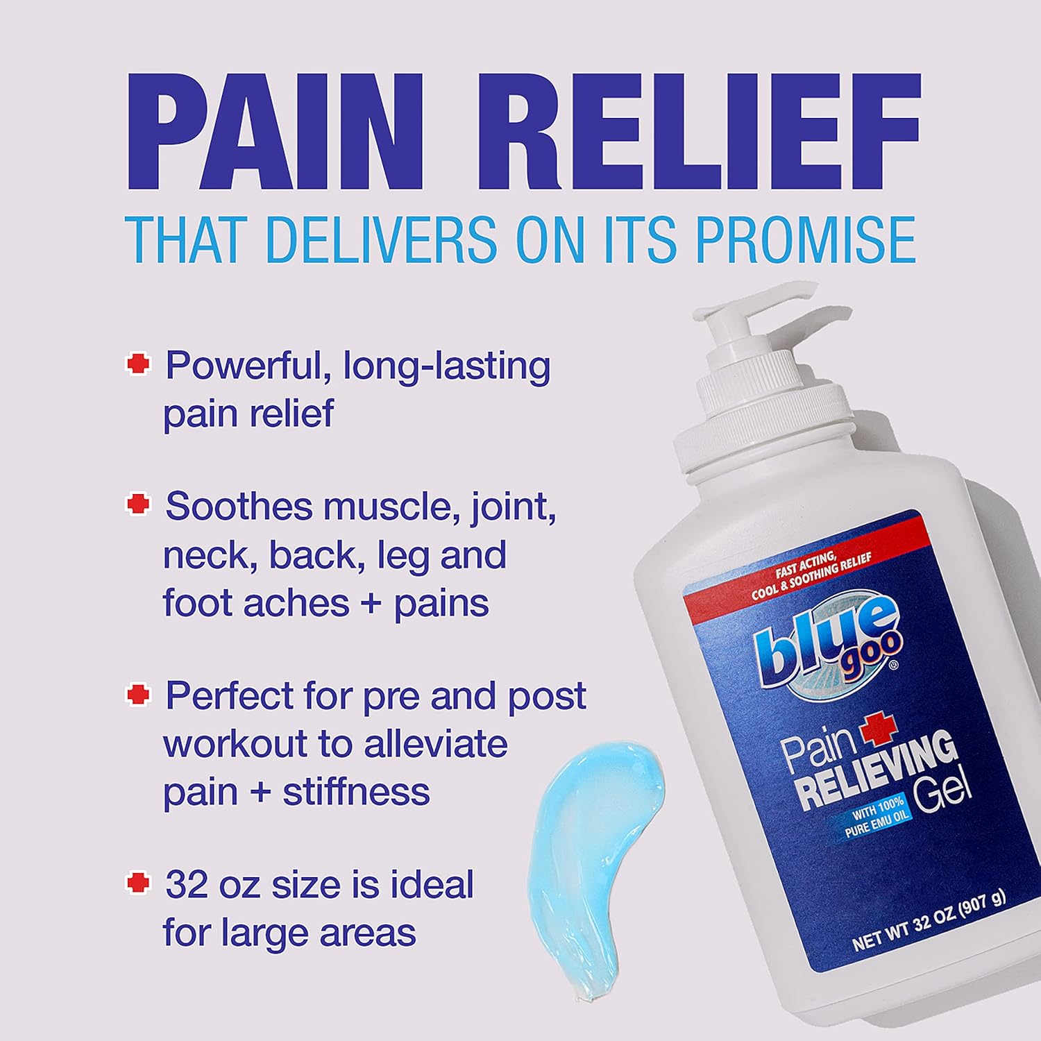 Blue Goo Pain Relieving Gel – Fast-Acting Cooling Relief for Back, Neck and Joint Discomfort, Soothes Headache, Leg and Foot Pain, Made with 100% Pure Emu Oil – 32 oz (1 Pack)