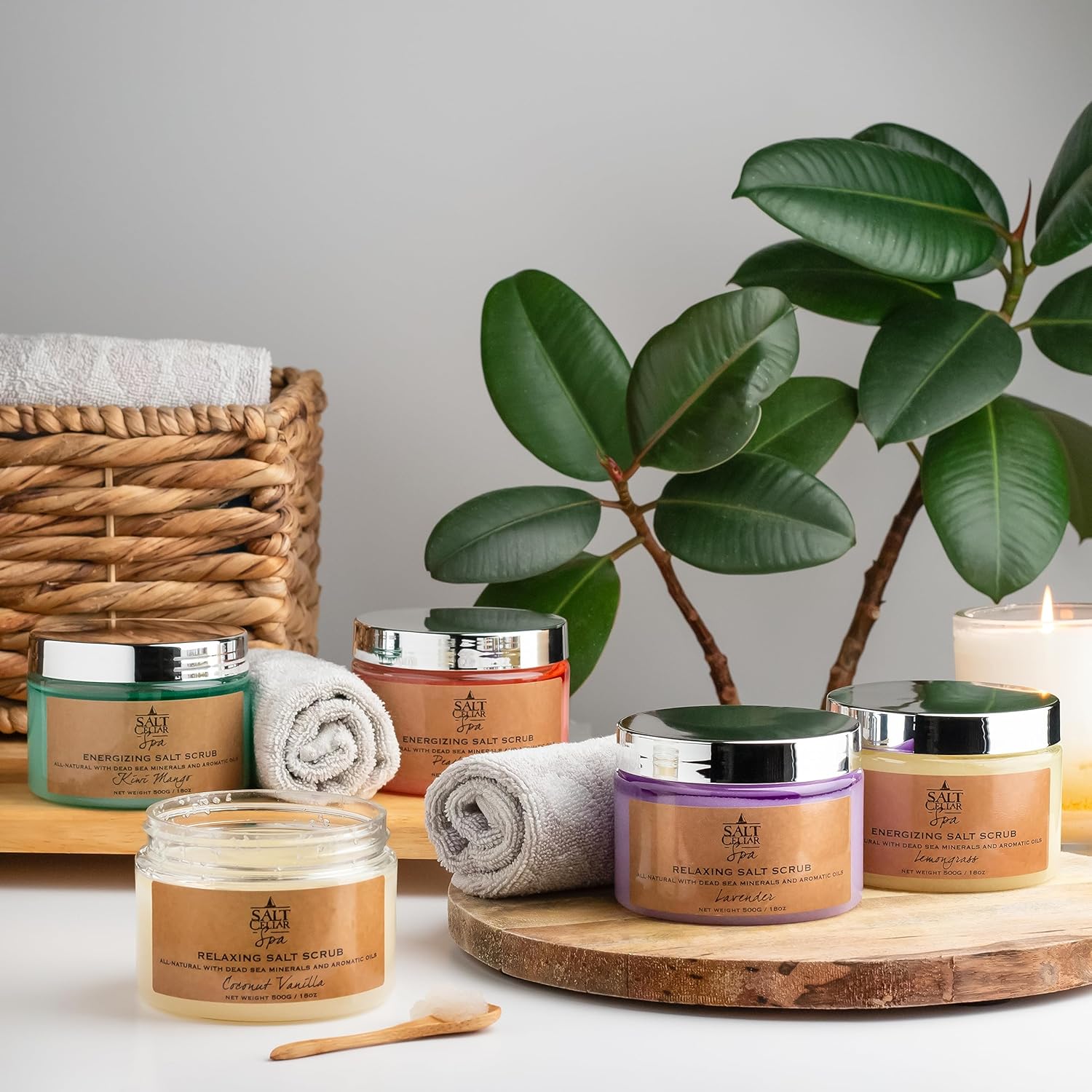 Salt Cellar Spa Skin Reviving Kiwi Mango Salt Scrub - Energize Your Skin with Dead Sea Minerals - Revive, Refresh, and Rejuvenate - Made in Israel, Cruelty-Free, 18 oz.