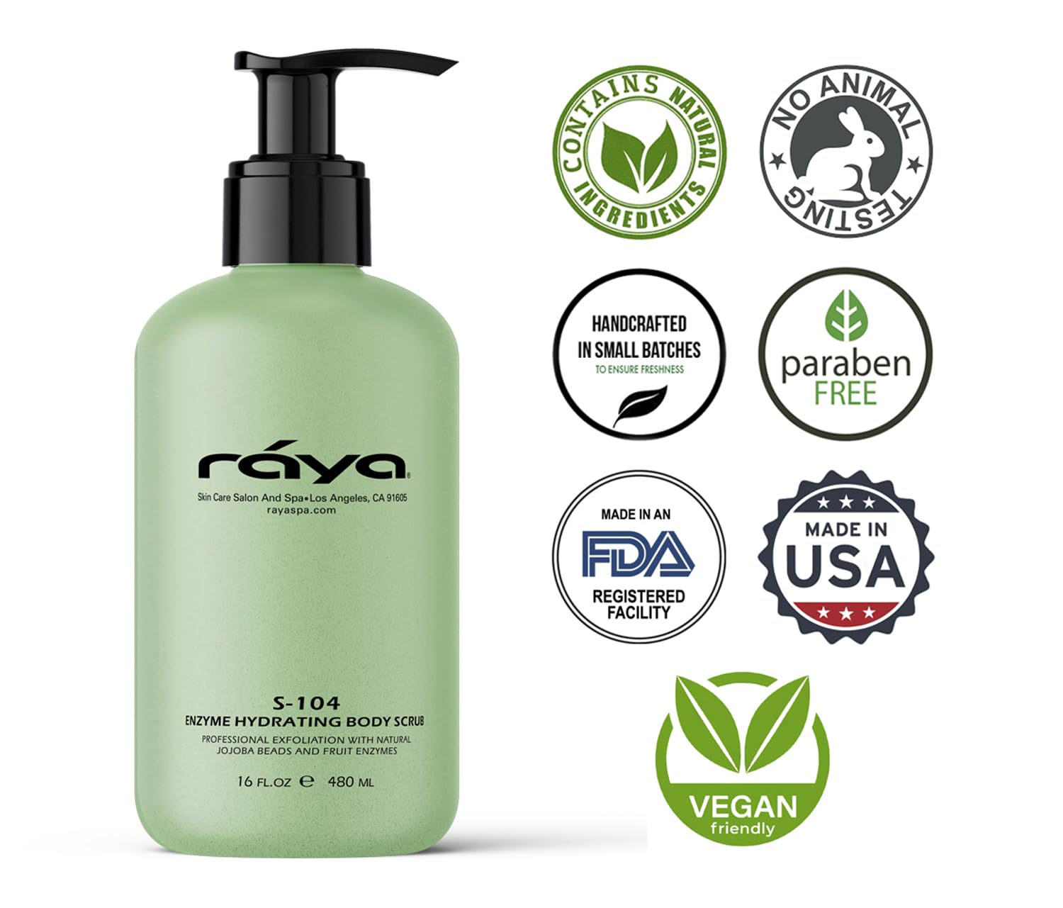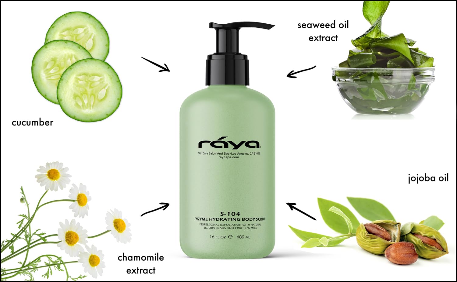 RAYA Enzyme Hydrating Body Scrub 16 oz Cucumber Scent (S-104) | Gentle and Exfoliating Body Scrub | Made with Seaweed, Jojoba Beads, and Fruit Enzymes