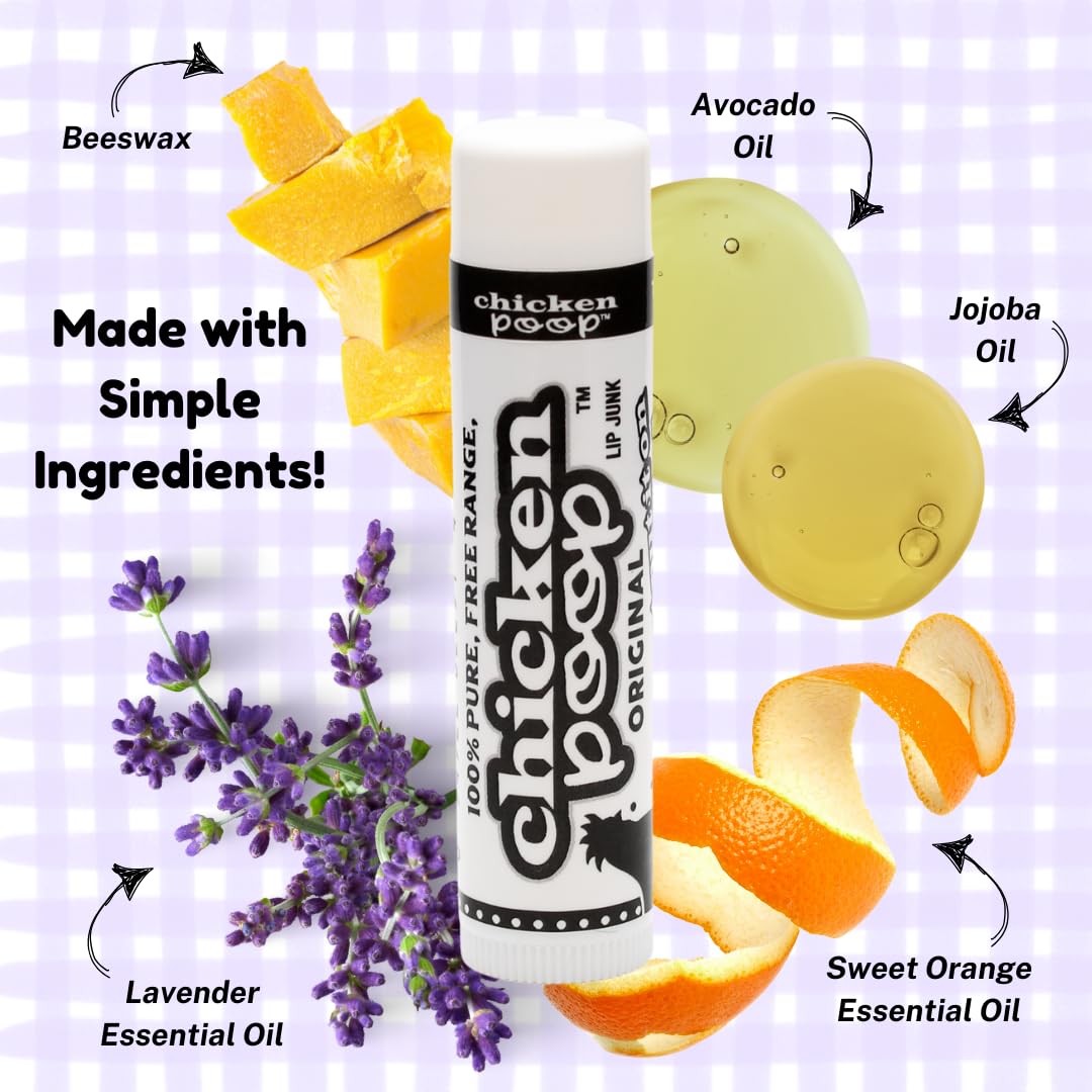 Chicken Poop Lip Balm Simone Chickenbone 100% Natural Moisturizer for Dry, Chapped Lips, 0.15 oz, (Original), Pack of 5
