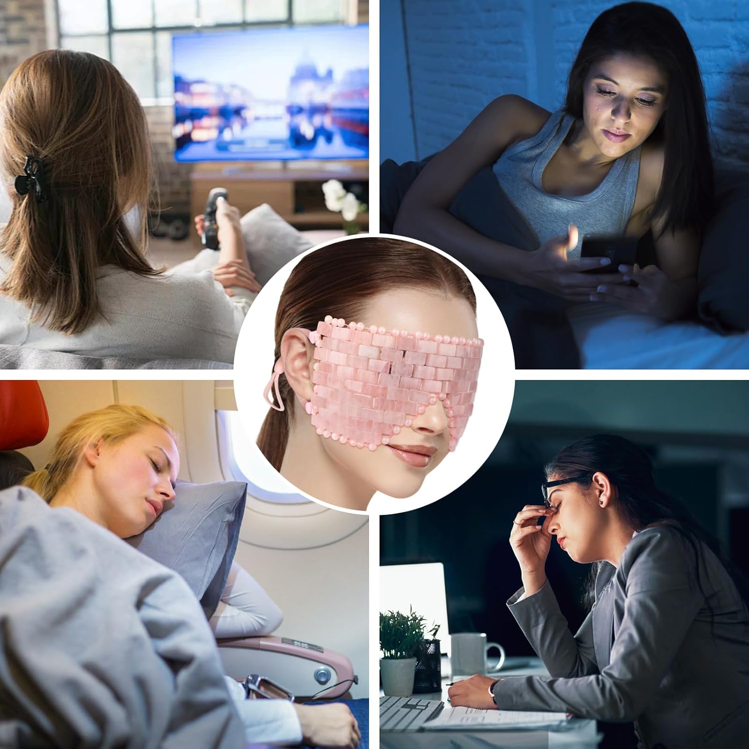 - Magical effects:Natural rose quartz eye mask can effectively relieve eye fatigue, promote energy flow and circulation, enhance sleep and relax muscles. Our natural crystal eye mask are easy to adjust and fit comfortably on your skin. Crystal stone has a natural cooling effect that calms and soothes your eyes when you need to rest and lie down.