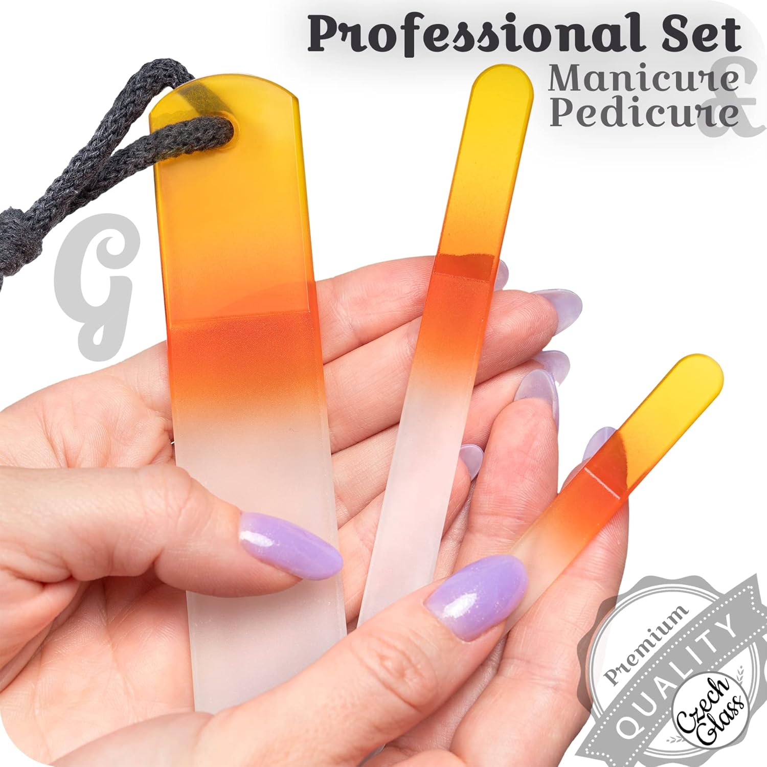 GLADZY Genuine Czech Glass Nail File Set - Callus Remover Foot Rasp, Double Sided Different Grit Surface, Professional Manicure and Pedicure Tools for Natural Nails, Nail Shaper, Ethically Made in EU