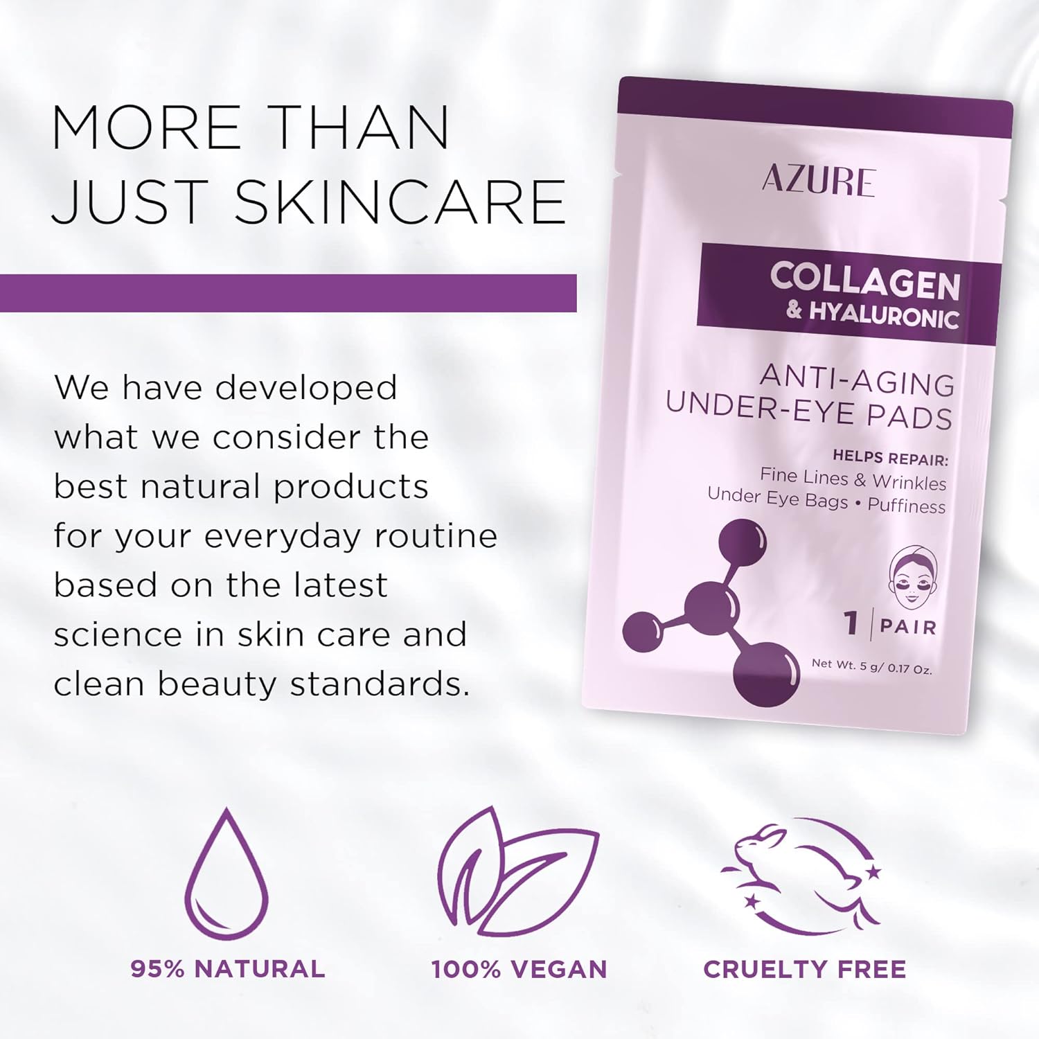 AZURE Collagen & Hyaluronic Acid Anti Aging Under Eye Pads - Lifting & Moisturizing Eye Mask Patches - Reduces Fine Lines, Wrinkles, Dark Circles & Puffiness - Skin Care Made in Korea - 5 Pairs