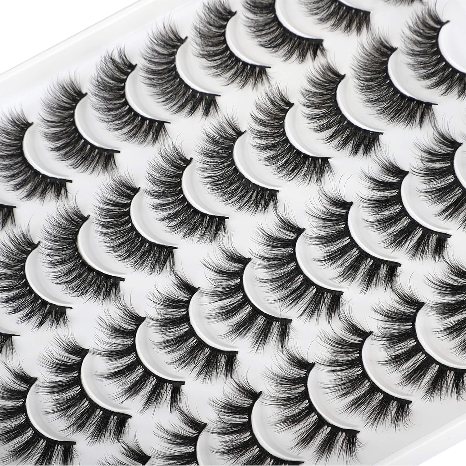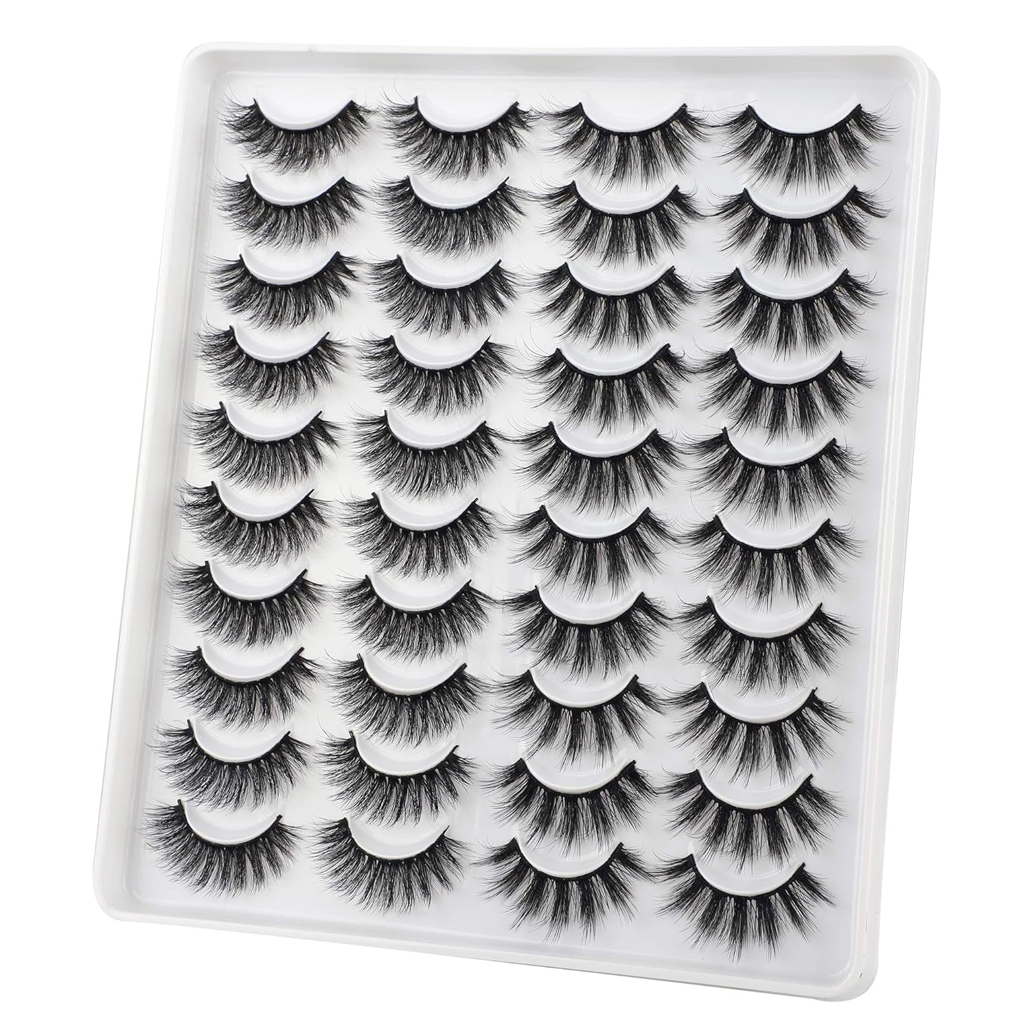 JIMIRE 20 Pairs False Eyelashes 2 Styles Mixed Fluffy Eyelashes Natural Volume Wispy Faux Mink Lashes Pack