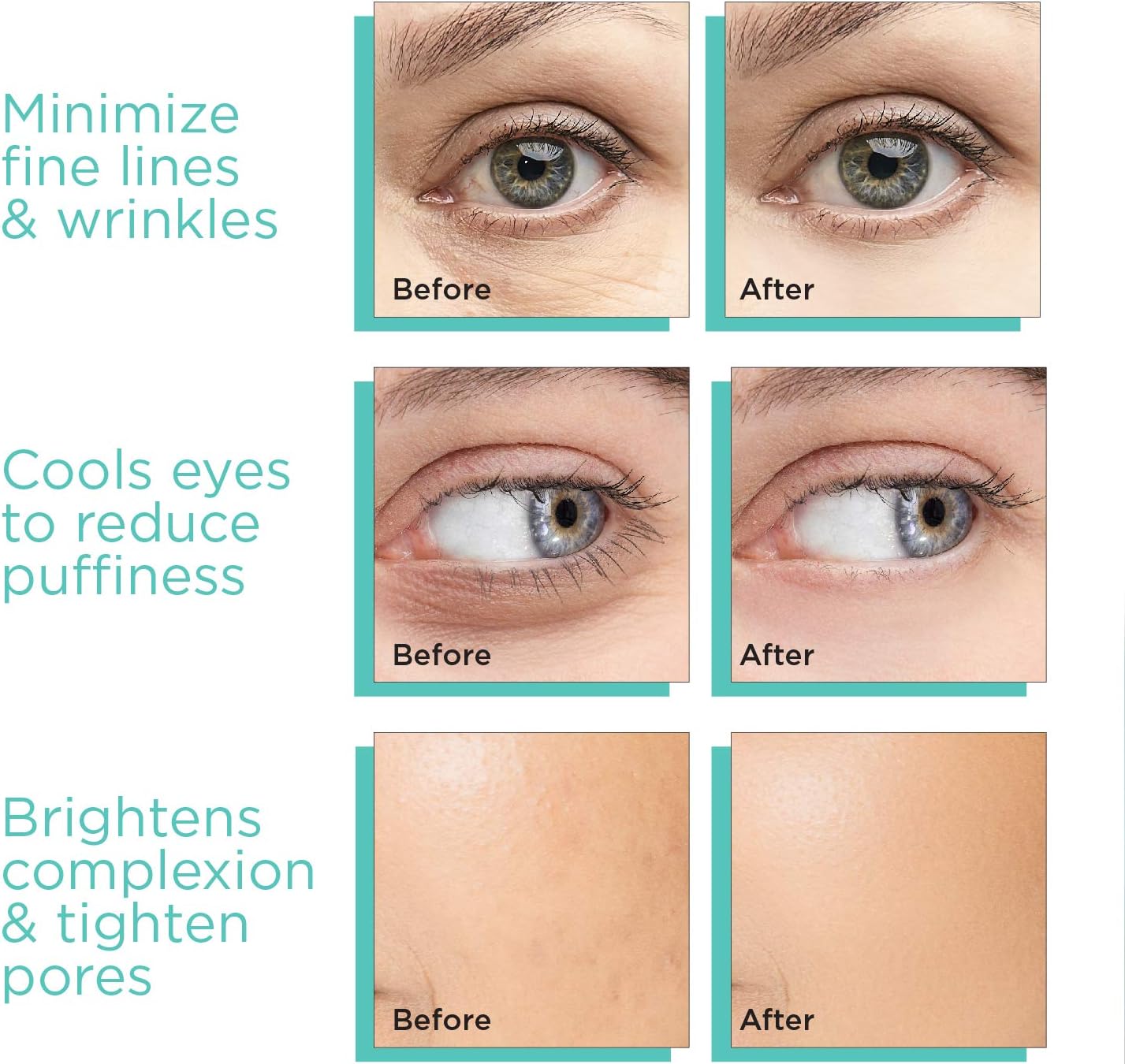 - Slim & contour, ice cooling globes stimulate circulation and encourage lymphatic drainage to help reduce facial swelling to cool, calm and depuff.