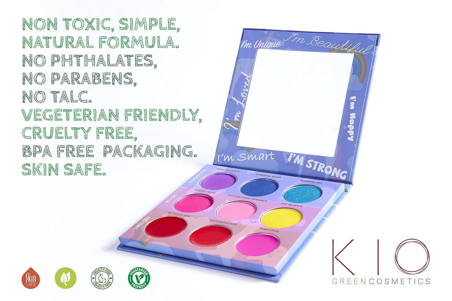 - ππππππππππ π πππππππ & πππππππ-π πππ: Our makeup palettes have been exclusively designed in the CALIFORNIA to ensure they are kept free from harsh materials such as phthalates, parabens, Talc, BPA etc. In addition to being vegeterian friendly and cruelty-free, this make up set will be favorite of both children and adults.