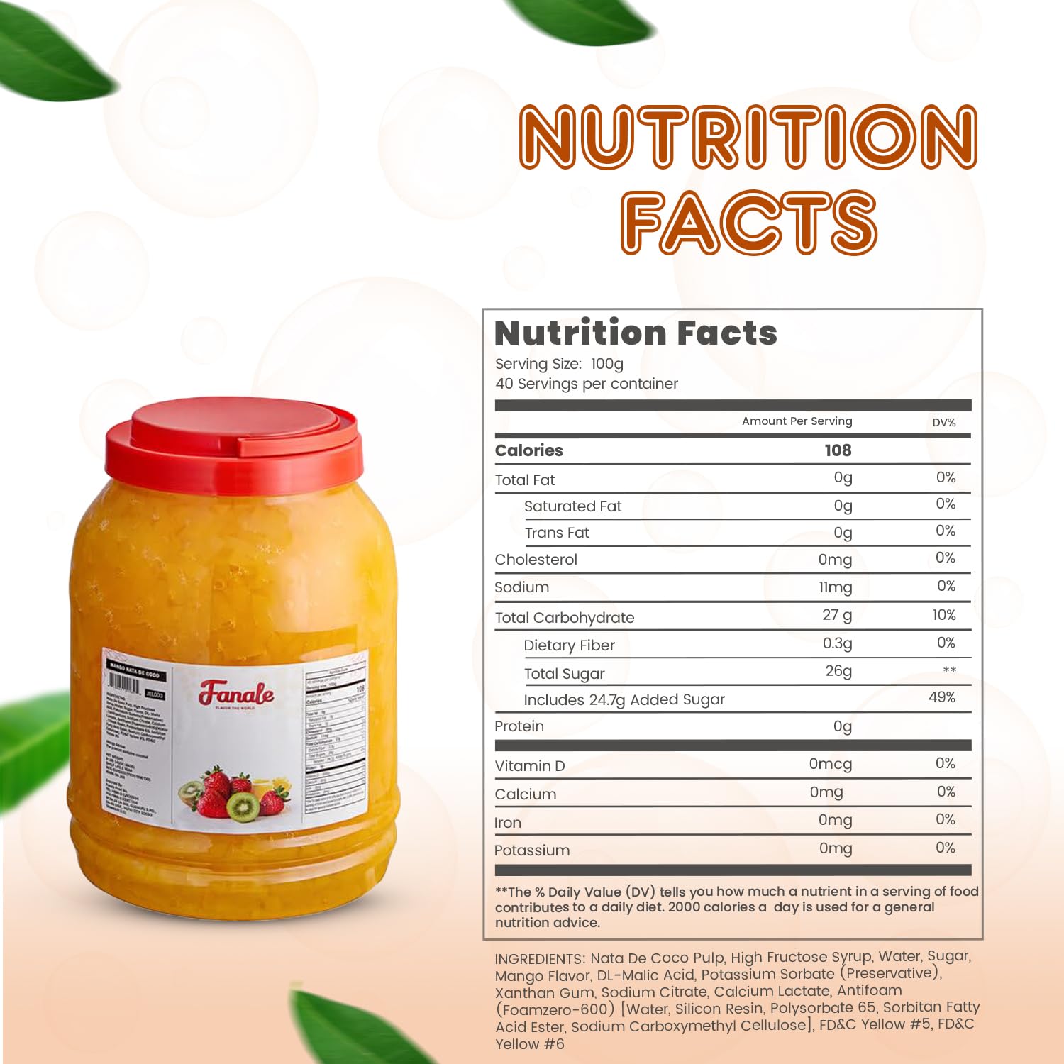 Fanale Coconut Jelly Topping nata de coco for Bubble Tea 8.3 lb | Mango Jelly | for Boba Tea, Smoothies, Slushes, Desserts | 8.3lb | JEL003