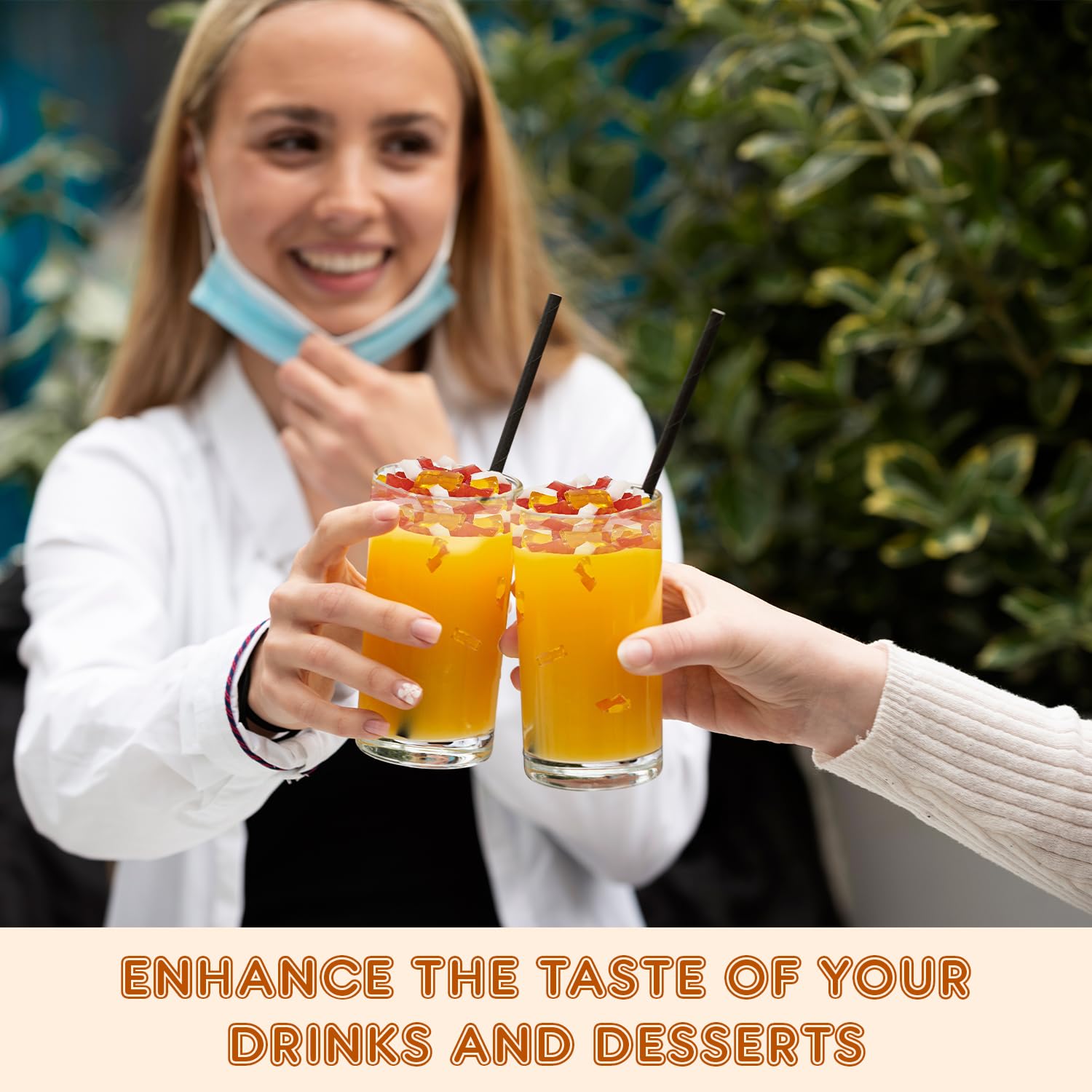 - Versatile Use: This boba tea jelly topping can be used in desserts like puddings, cakes, or tropical-themed pastries. It is also suitable for cocktails or mocktails, adding a unique texture and flavor to beverages and allowing chefs to experiment by using it as a base for creating innovative recipes.