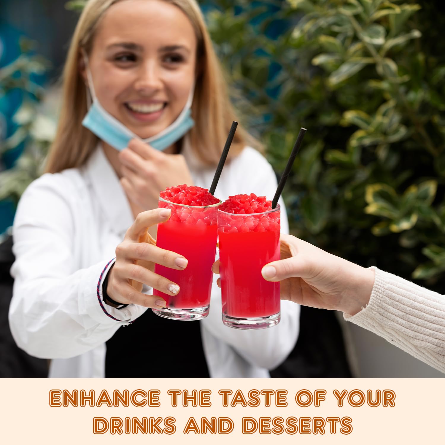 - ๐๐๐ซ๐ฌ๐๐ญ๐ข๐ฅ๐ ๐๐ฌ๐: This boba tea jelly topping can be used in desserts like puddings, cakes, or tropical-themed pastries. It is also suitable for cocktails or mocktails, adding a unique texture and flavor to beverages and allowing chefs to experiment by using it as a base for creating innovative recipes. ๐ ๐จ๐ซ ๐ฒ๐จ๐ฎ๐ซ ๐ฉ๐๐๐๐ ๐จ๐ ๐ฆ๐ข๐ง๐, ๐ญ๐ก๐ ๐ฉ๐ซ๐จ๐๐ฎ๐๐ญโ๐ฌ ๐๐ฑ๐ฉ๐ข๐ซ๐๐ญ๐ข๐จ๐ง ๐๐๐ญ๐ ๐ข๐ฌ ๐๐ฅ๐๐๐ซ๐ฅ๐ฒ ๐ฉ๐ซ๐ข๐ง๐ญ๐๐ ๐จ๐ง ๐ญ๐ก๐ ๐๐๐๐ค ๐จ๐ ๐ญ๐ก๐ ๐ฉ๐๐๐ค๐๐ ๐ข๐ง๐ , ๐๐ง๐ฌ๐ฎ๐ซ๐ข๐ง๐ ๐๐ซ๐๐ฌ๐ก๐ง๐๐ฌ๐ฌ ๐๐ง๐ ๐ช๐ฎ๐๐ฅ๐ข๐ญ๐ฒ.