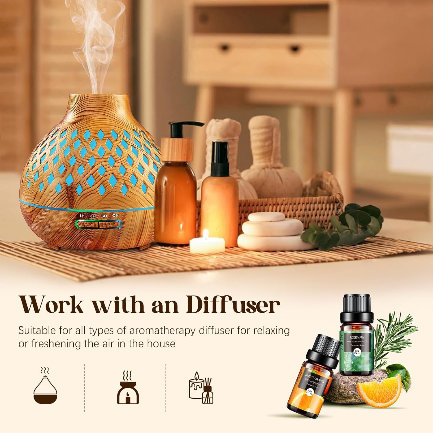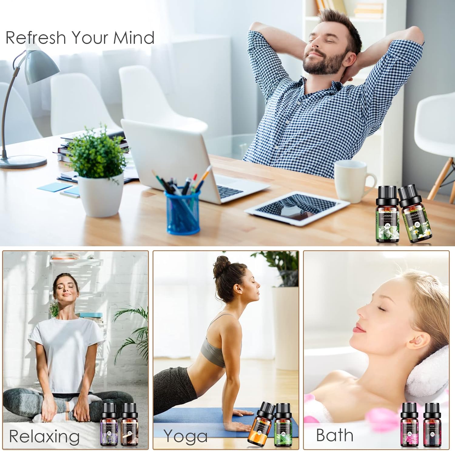 - ๐Multi-Use: Our essential oils always adopt rigorous quality control standards. Simply add a few drops to any aromatherapy diffuser and fill your entire room with that aroma. And suitable for humidifier, aromatherapy, steam inhalations, hair or skin care, massage, bath, saunas, air freshening, home fragrance (bedroom, living room, bathroom, study room), office (workstation, conference room), yoga room and spa, etc.