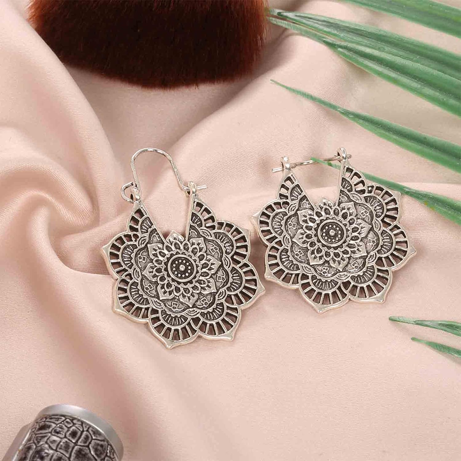 - Silver Mandala Earrings with real images,2pcs each pack.