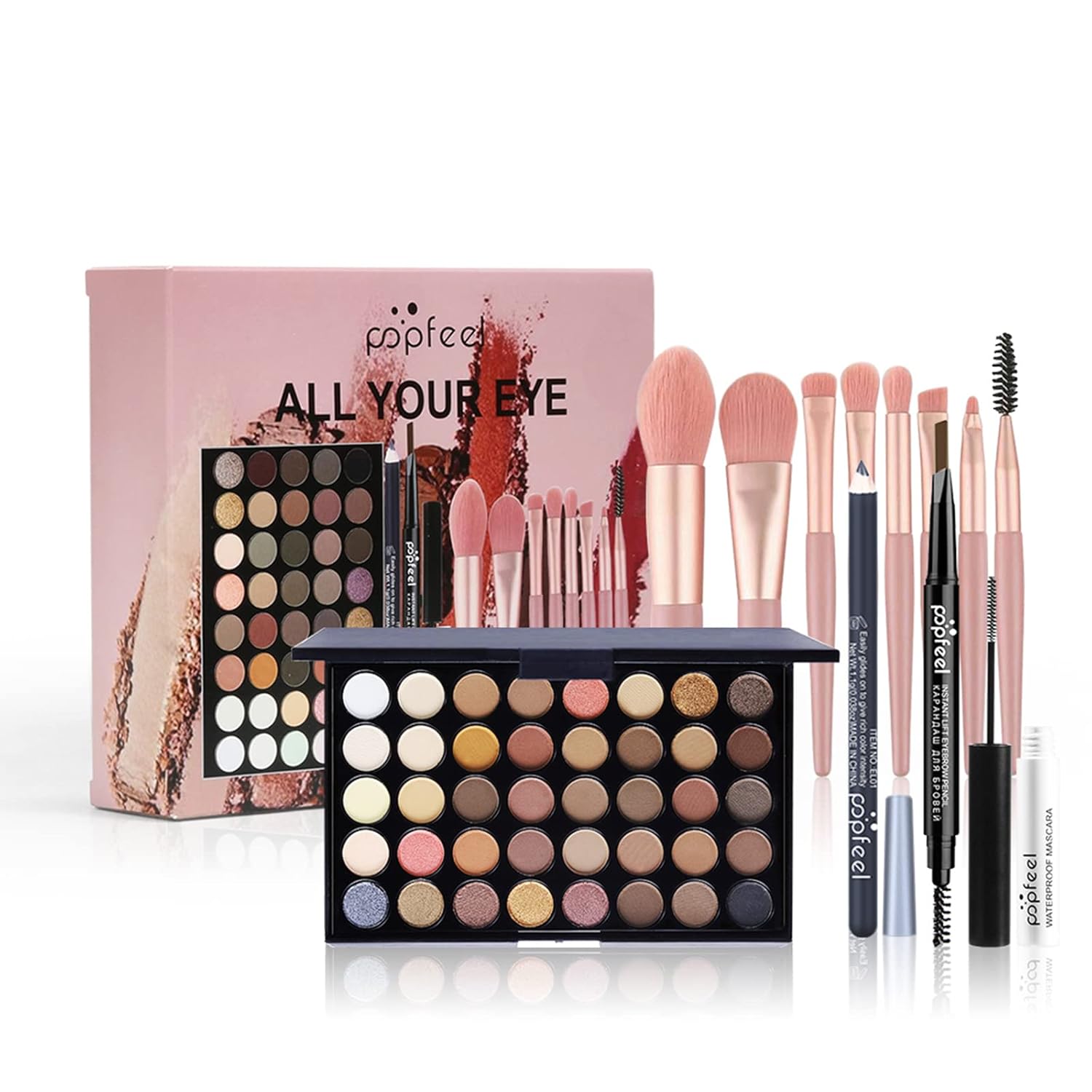 All-in-one Makeup Set Holiday Gift Surprise | Full Makeup Kit for Women Essential Starter Bundle Include Eyeshadow Palette Lipstick Blush Concealer Face Powder Eyeliner Mascara Soft Brush
