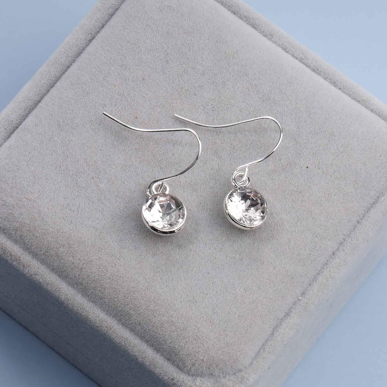 Crystal Dangle Drop Earrings Silver Dangle Crystal Hook Earrings Minimal Crystal Solitaire Earrings Classic Rhinestone Bridal Earrings Jewelry for Women and Girls