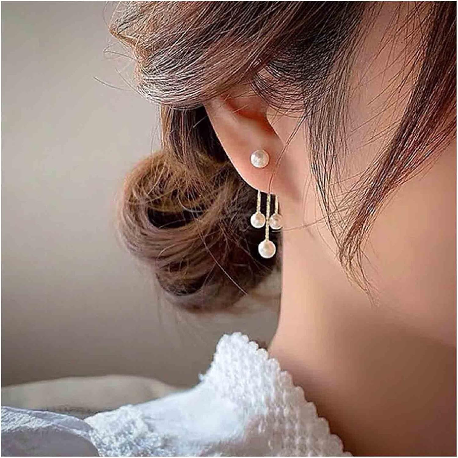 Boho Pearl Drop Dangle Earrings Gold Pearl Ear Jacket Earrings Vintage Dangle Pearl Tassel Earrings Double Way Front Back Earrings Jewelry for Women Gifts