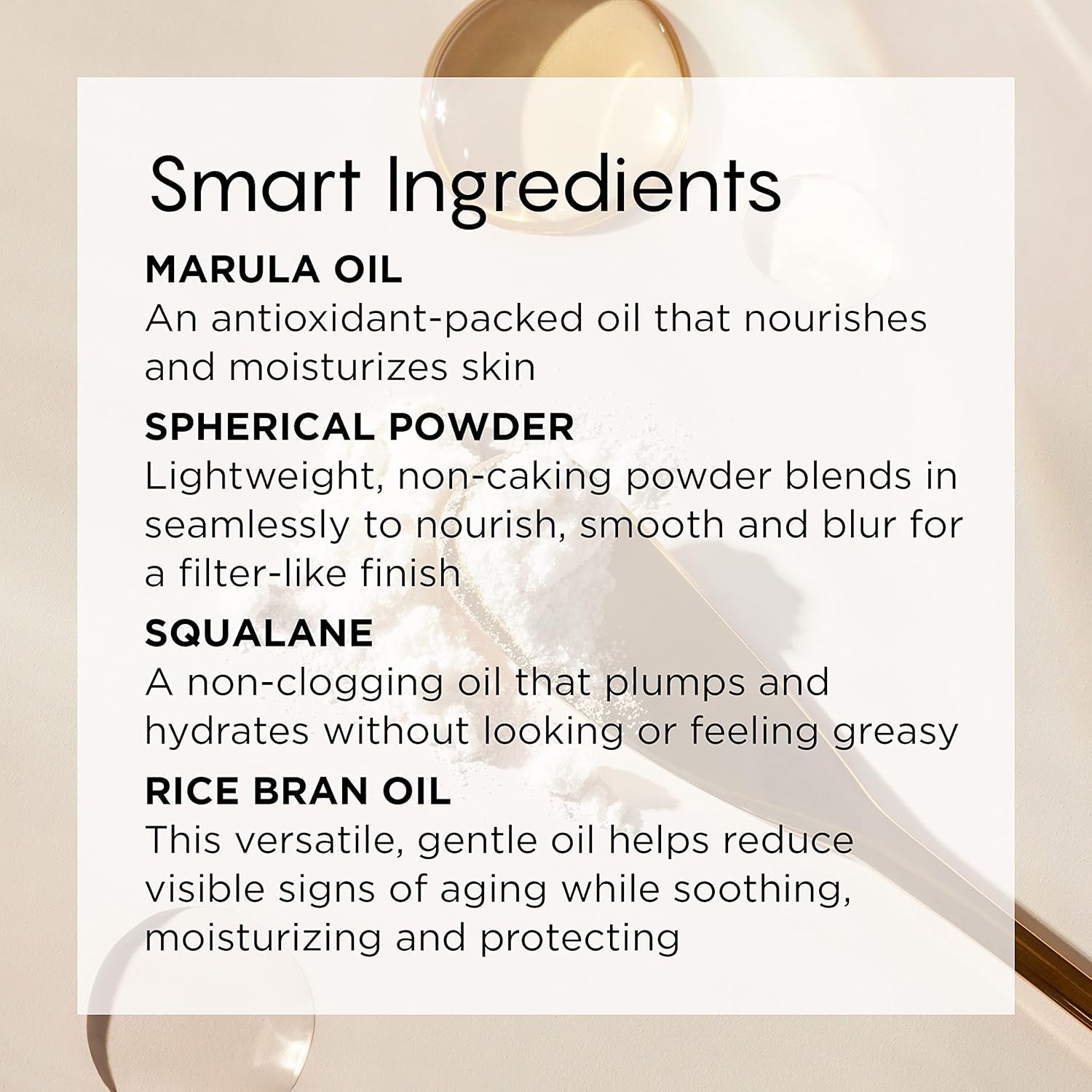 - INGREDIENTS: Marula Oil An antioxidant-packed oil that nourishes and moisturizes skin Spherical Powder Lightweight, non-caking powder blends in seamlessly to nourish, smooth and blur for a filter-like finish Squalane A non-clogging oil that plumps and hydrates without looking or feeling greasy Rice Bran Oil This versatile, gentle oil helps reduce visible signs of aging while soothing, moisturizing and protecting