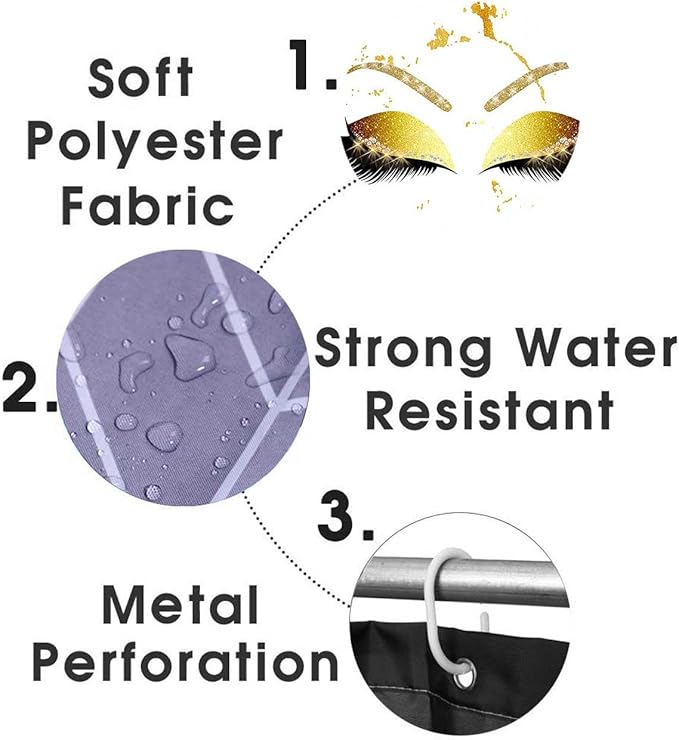 4PCS Hello Gorgeous Unicorn Eyelash Shower Curtain Set with Rugs, Luxury Diamond Gold Glitter Eyebrow Eyeshadow Makeup White Marble Glam Modern Fashion Women Bathroom Decor, Hello Gorgeous