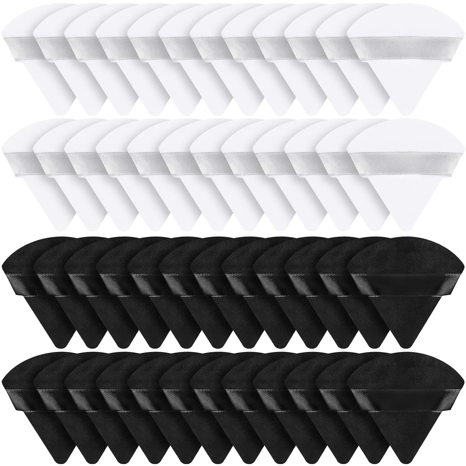 Suclain 48 Pcs Velour Triangle Powder Puff Soft Velour Makeup Puff for Face Powder Makeup Triangle Sponges for Wet and Dry Cosmetic Foundation Loose Mineral Body Makeup Tool(Black, White)
