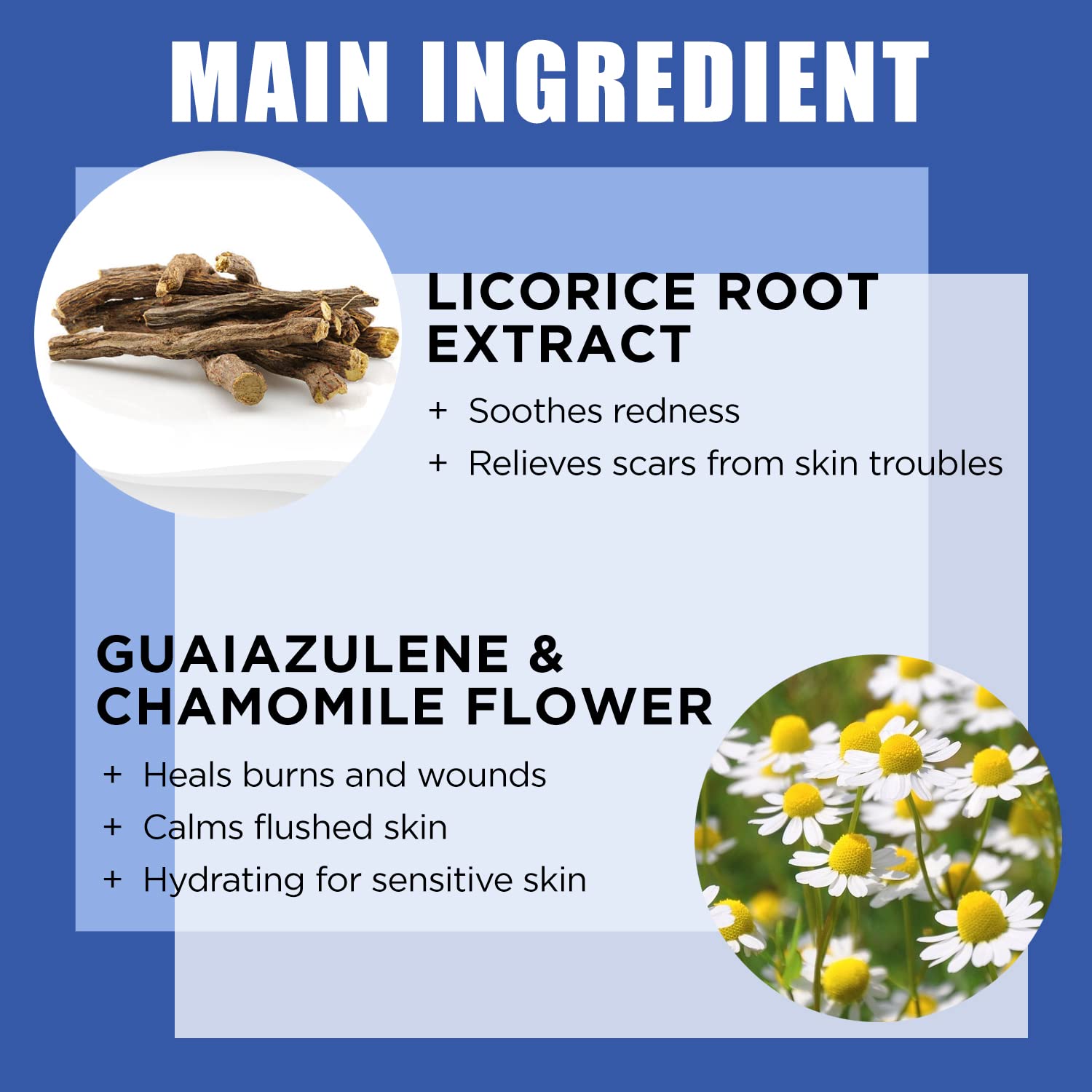 - KEY INGREDIENTS FOR ALL: All of our face care products are formulated using Power Effect 100TM, a 100-hour process dedicated. Licorice root extract soothes skin and is effective on itchy skin. This unique formula with guaiazulene, chamomile flower extracts, and panthenol helps moisturize your skin and promote a balanced PH for it