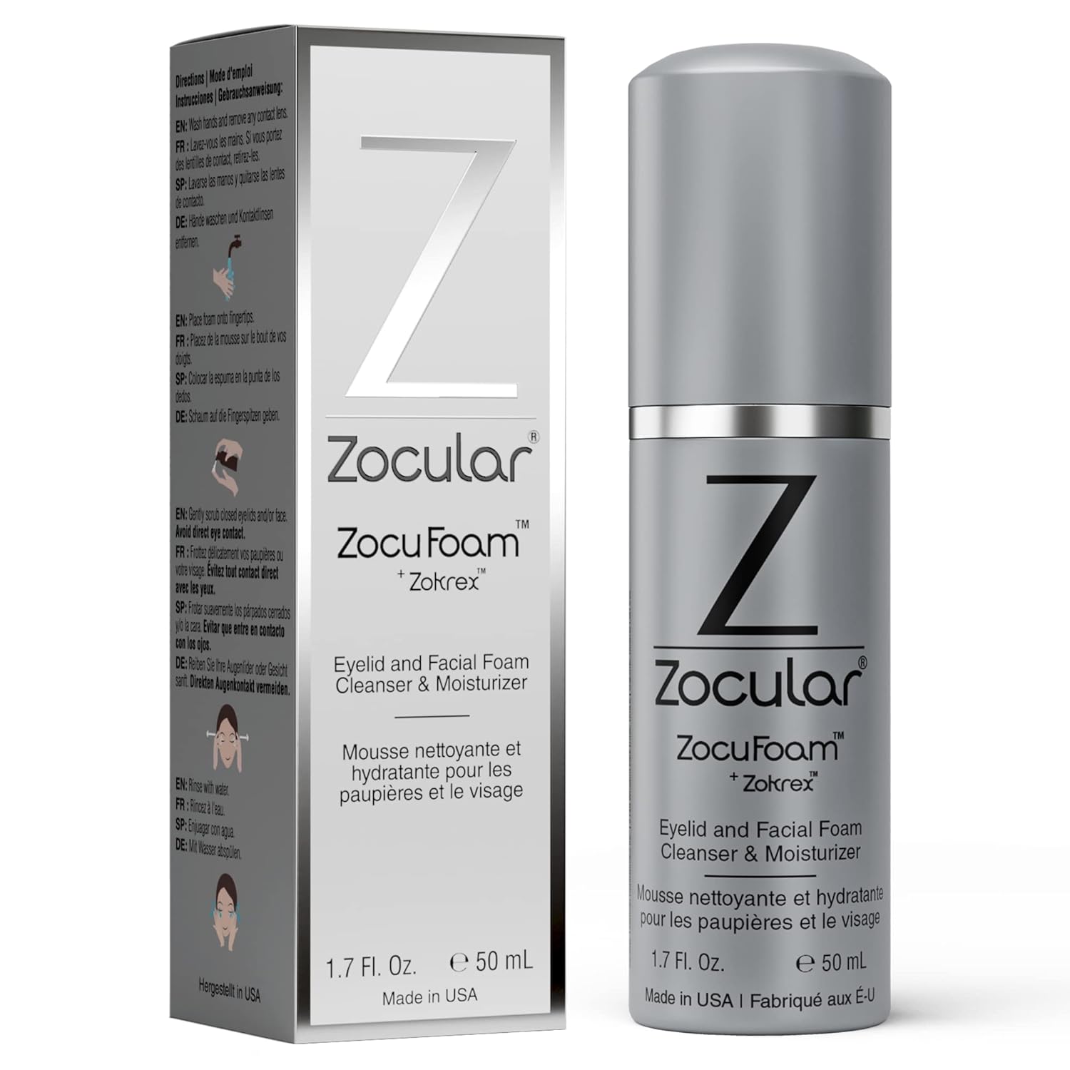 ZocuFoam Eyelid Cleanser - Foaming Eyelid Scrub - Natural pH Balanced Solution - 1.7 FL OZ (50mL)