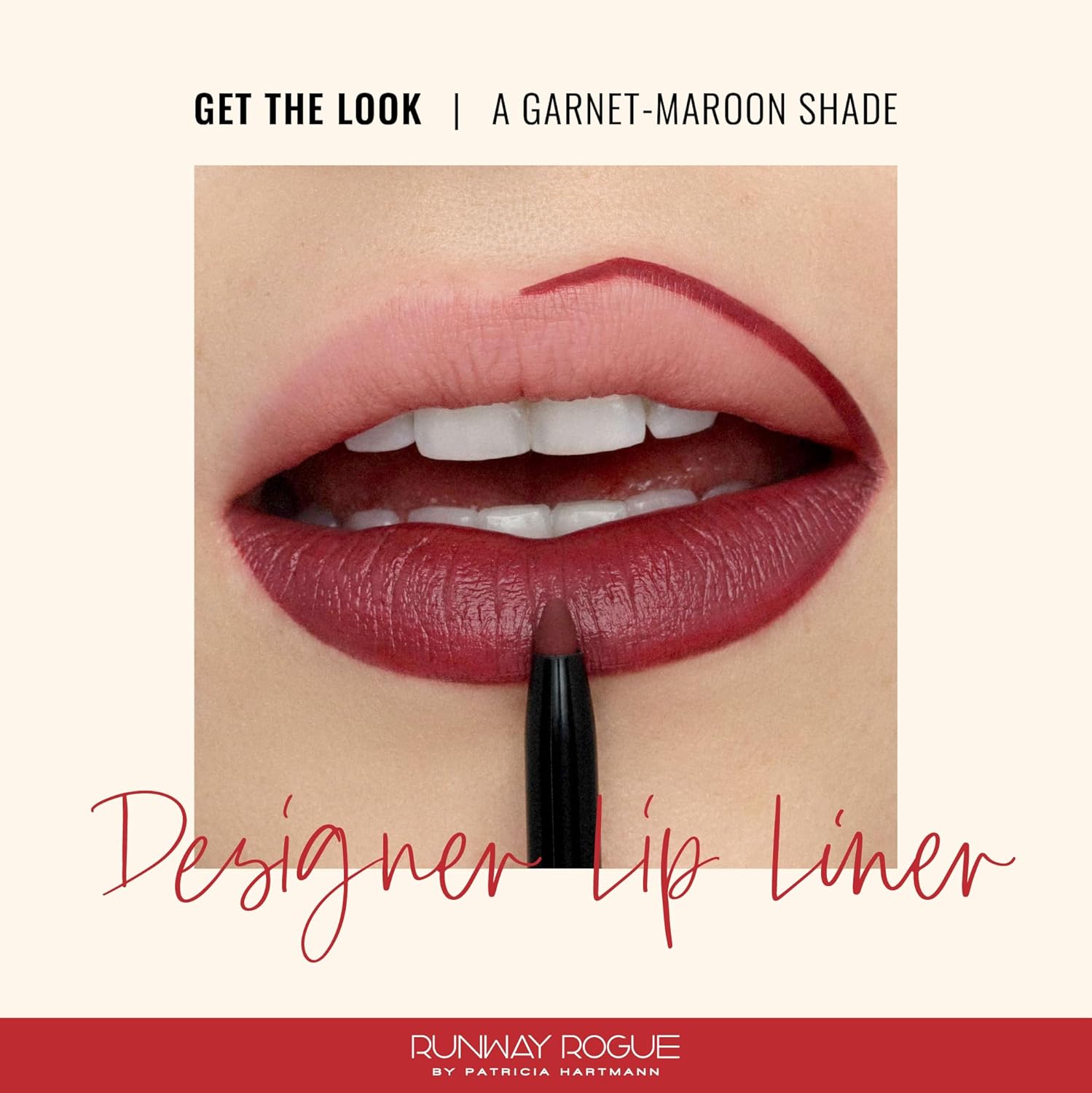 - MATTE LIP LINER PENCIL: Designer Lip Liner is a creamy matte lip pencil designed to help contour and enhance your natural lip shape, keep your lipstick in place, and prevent lipstick from feathering and bleeding while also improving its long wear and lip color. ‘Get the Look’ is a garnet-maroon lip liner shade.
