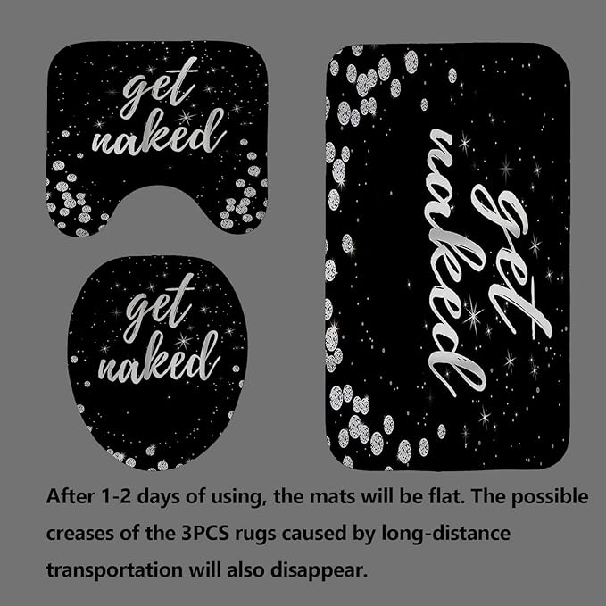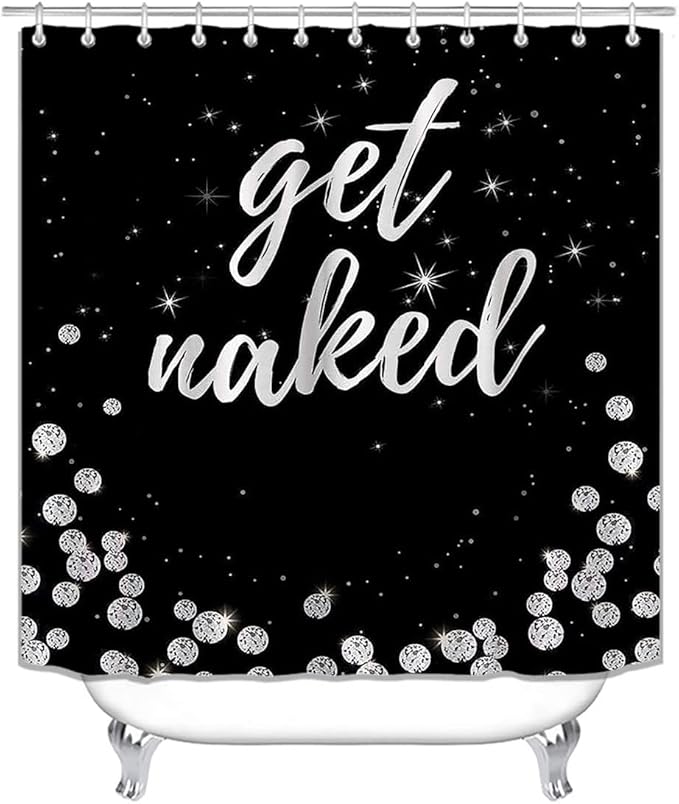 4PCS Luxury Diamond Shower Curtain Set, Bling Rhinestone Gem Crystal Jewelry Shining Starry Sky Galaxy Bathroom Decor, Waterproof Fabric Black Shower Curtain, Get Naked Bath Mat Toilet Rug
