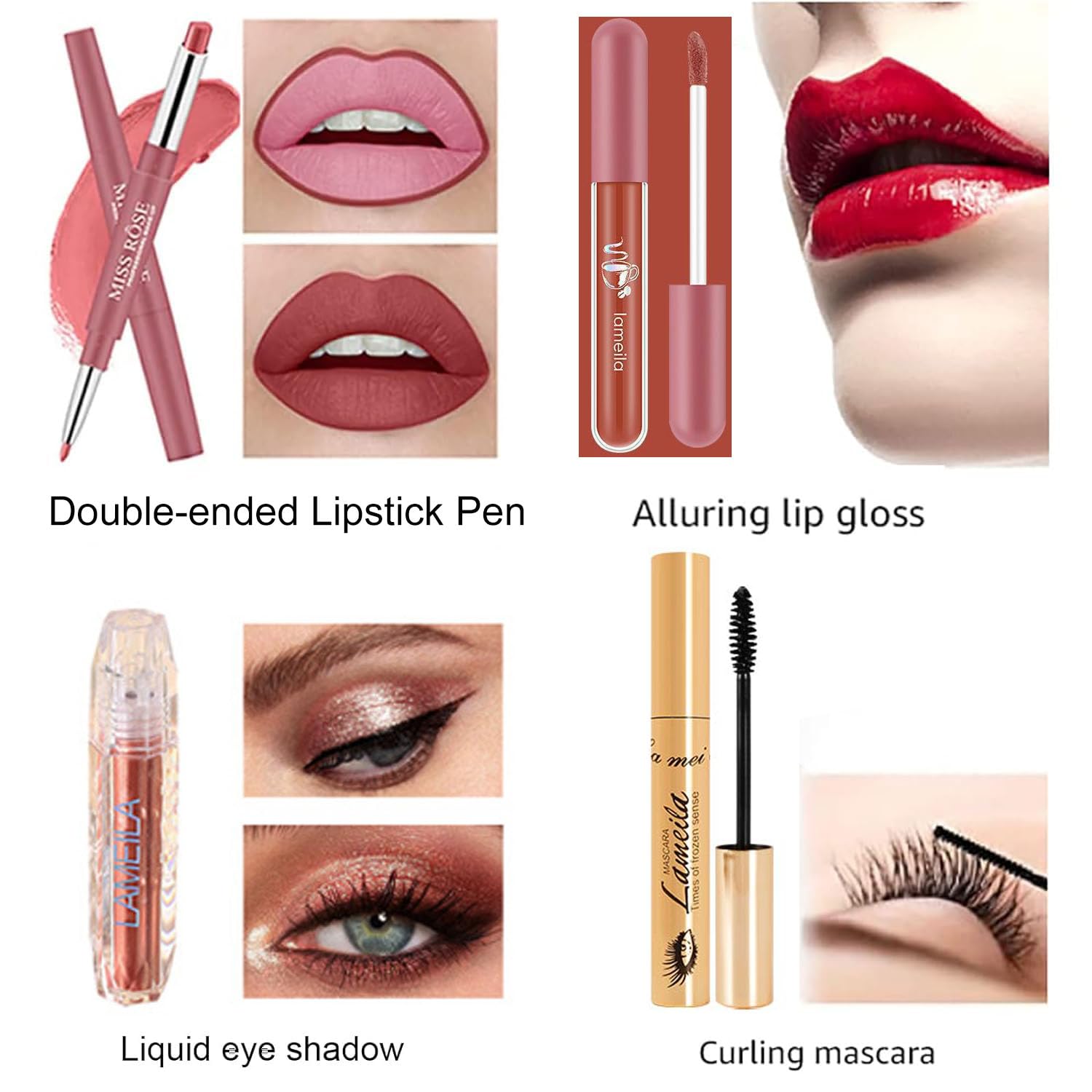 - ๐ใAll In One Makeup SetใIncludes: 1 cosmetic bag, 2-Color Powder, 2-Colors Blush, 1 eyeliner, 1 eyebrow pencil, 1 powder puff, 1 Eyeshadow Stick, 1 Mascara, 1 lip gloss, 1 Double-ended Lipstick