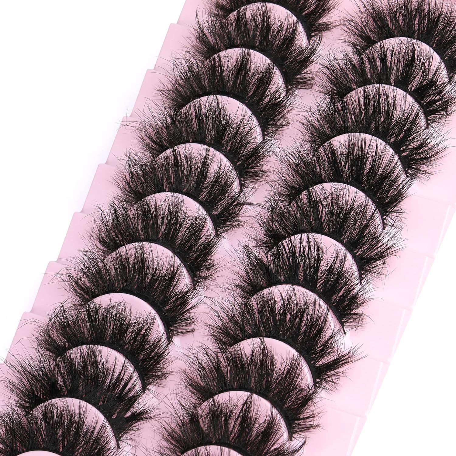 - 10 pairs of soft, mink lashes with enlarged eyes