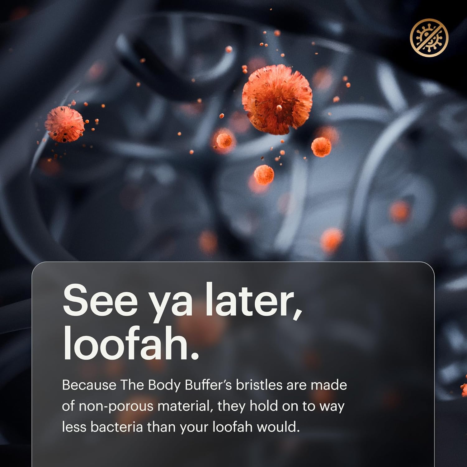 - SEE YA LATER, LOOFAH: Because The Body Buffer’s bristles are made of non-porous food-grade silicone, they hold on to less bacteria than your loofah would.