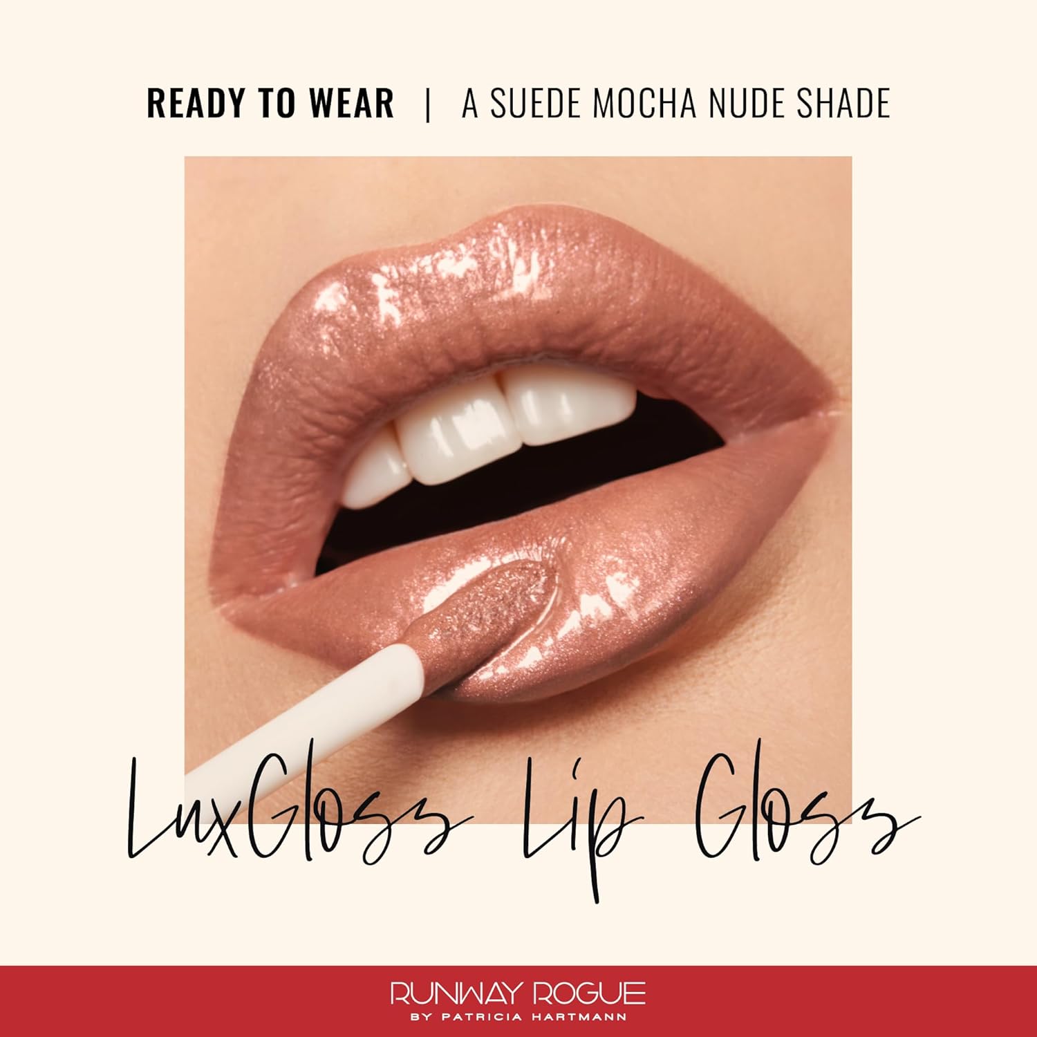 Runway Rogue LuxGloss Lip Gloss, High-Pigment Shimmery Suede Mocha-Nude Lip Gloss, ‘Ready to Wear’