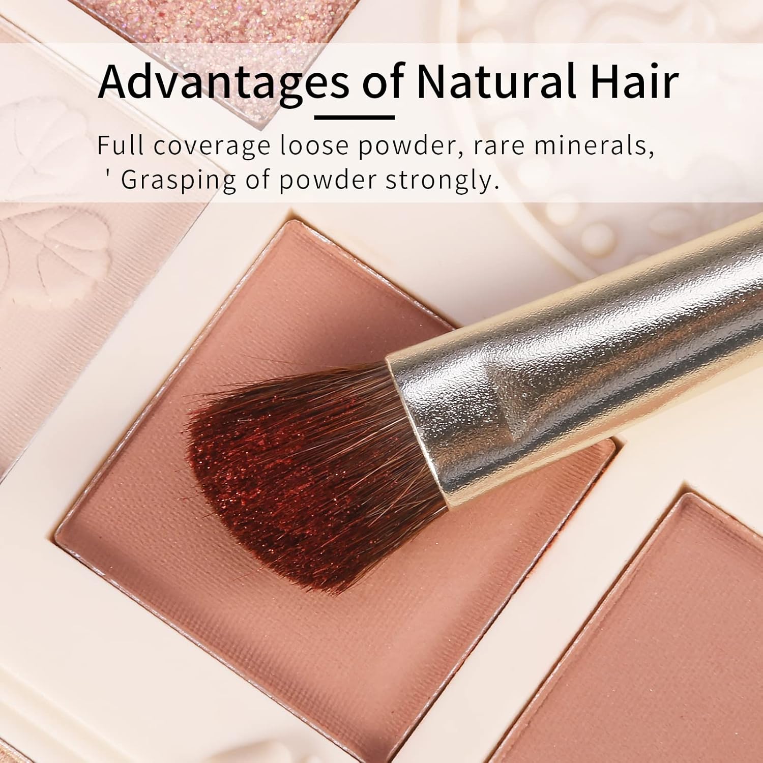 - ♥【Matte Golden Ferrule】▬ Highgrade Aluminum Alloy, Not Easy to Scratch, No Shedding, Exquisite & Durable, Angled Eye Shadow Make Brushes Real Hair, Travel Eyeshadow Brush Fit for Fast Application.