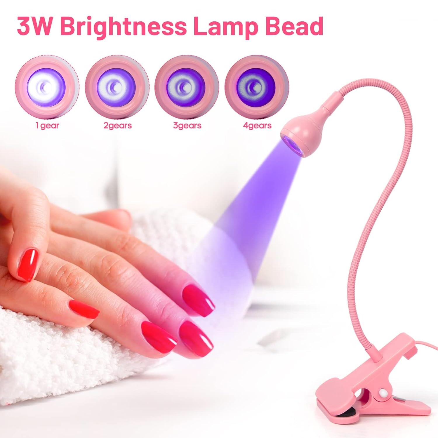 AORAEM LED Nail Lamps 3W Flexible Gooseneck Lamp Quicky Dry Nail Manicure Dryer Gel Polish Curing Light Plug Play Portable Flash Cure Light for Gel Nails Home DIY Professional Nail Tools Pink