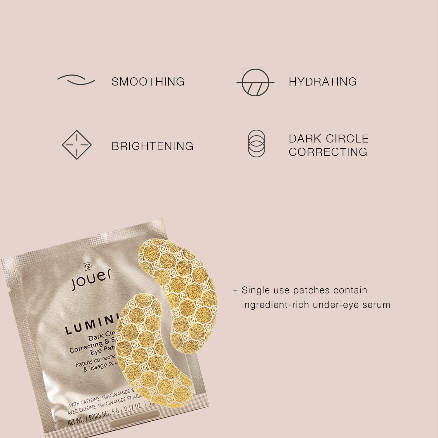 Jouer Luminize Dark Circle Correcting & Smoothing Eye Patches, Caffeine Eye Patches for Dark Circles and Puffiness, Under Eye Mask Patches for Wrinkles