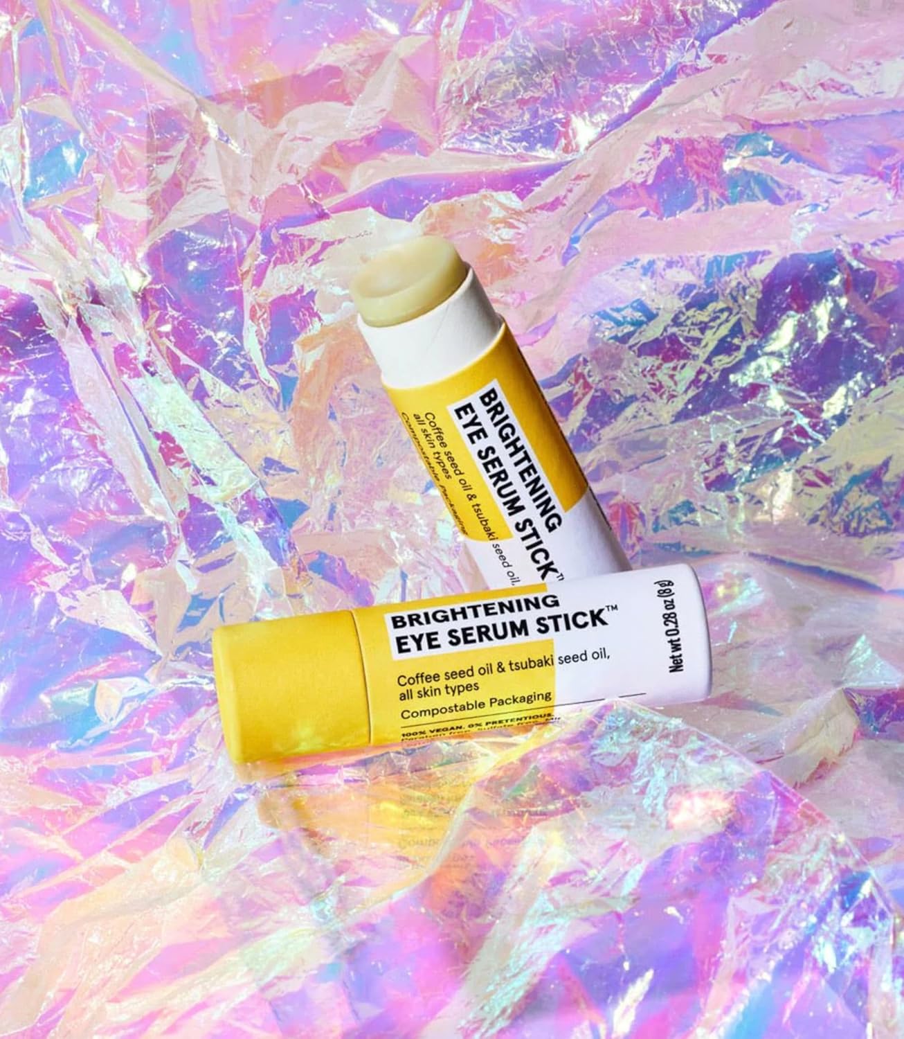 - This waterless eye serum stick goes from solid to serum on contact with antioxidant rich broccoli seed oil, tsubaki seed oil and coffee seed oil. Inner packaging is home compostable once empty.