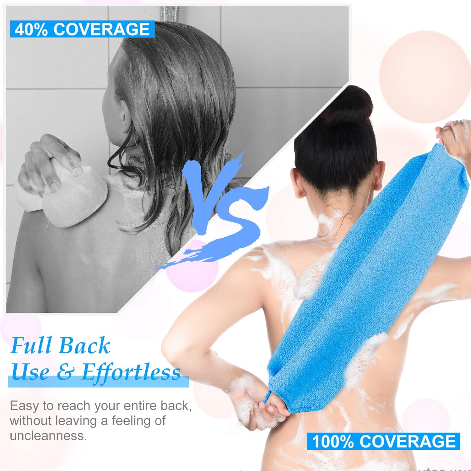 - Versatile Exfoliating Back Scrub: combined with handles at both ends, the exfoliating body scrubber can reach your back with ease, in addition, this washcloth for back is also suitable for most inaccessible shoulders, back, and lower back areas, helping rinse dirty easily