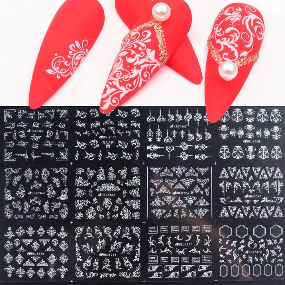 - Package: You will get 12 styles White Lace Flowers nail art stickers in one set, cut the cute flower, line and leaf pattern to fit most natural or fake nails, there are many patterns for you to choose from