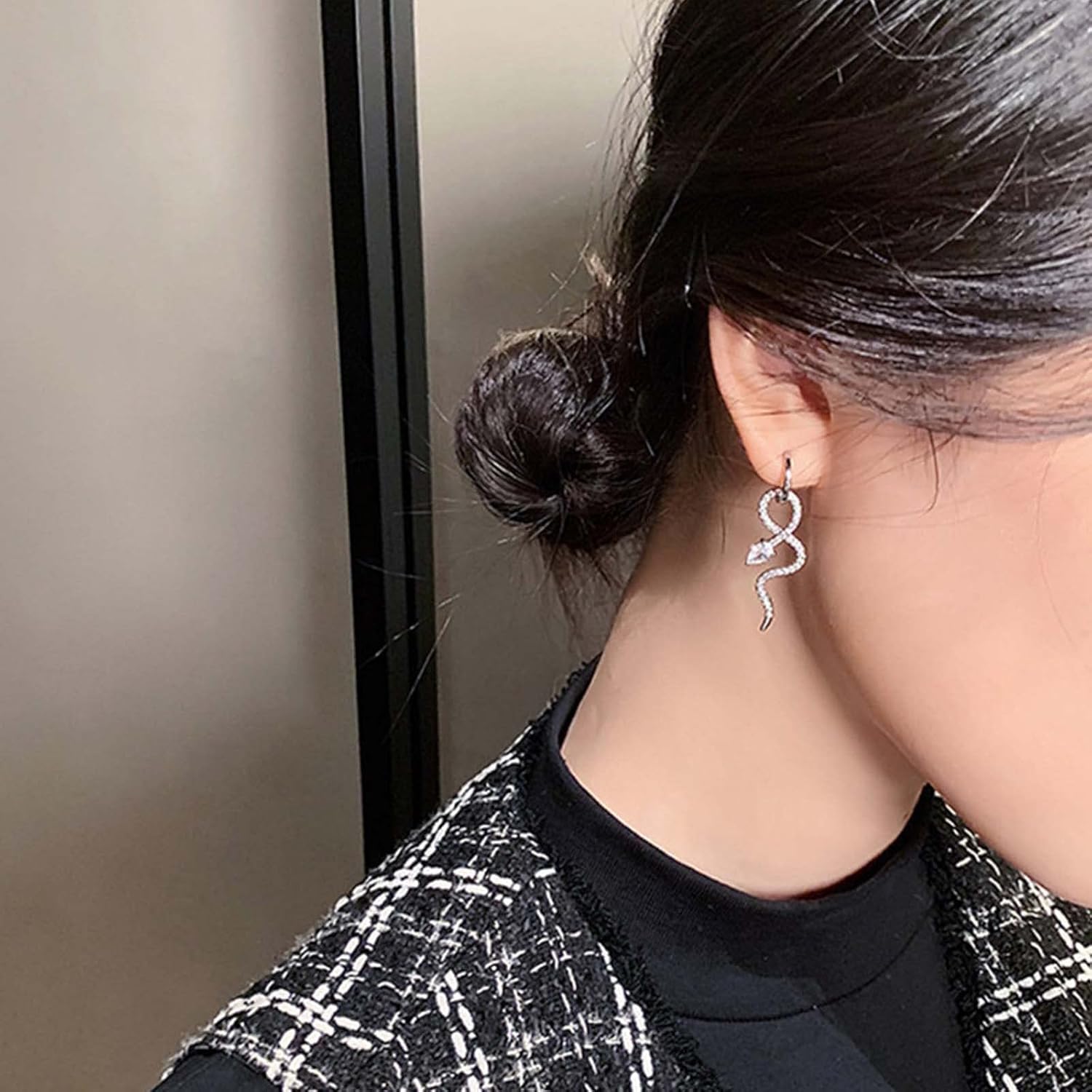 Gothic Crystal Snake Drop Earrings Silver Serpent Earrings Punk Snake Hoop Earrings Unusual Halloween Earrings Jewelry for Women and Girls
