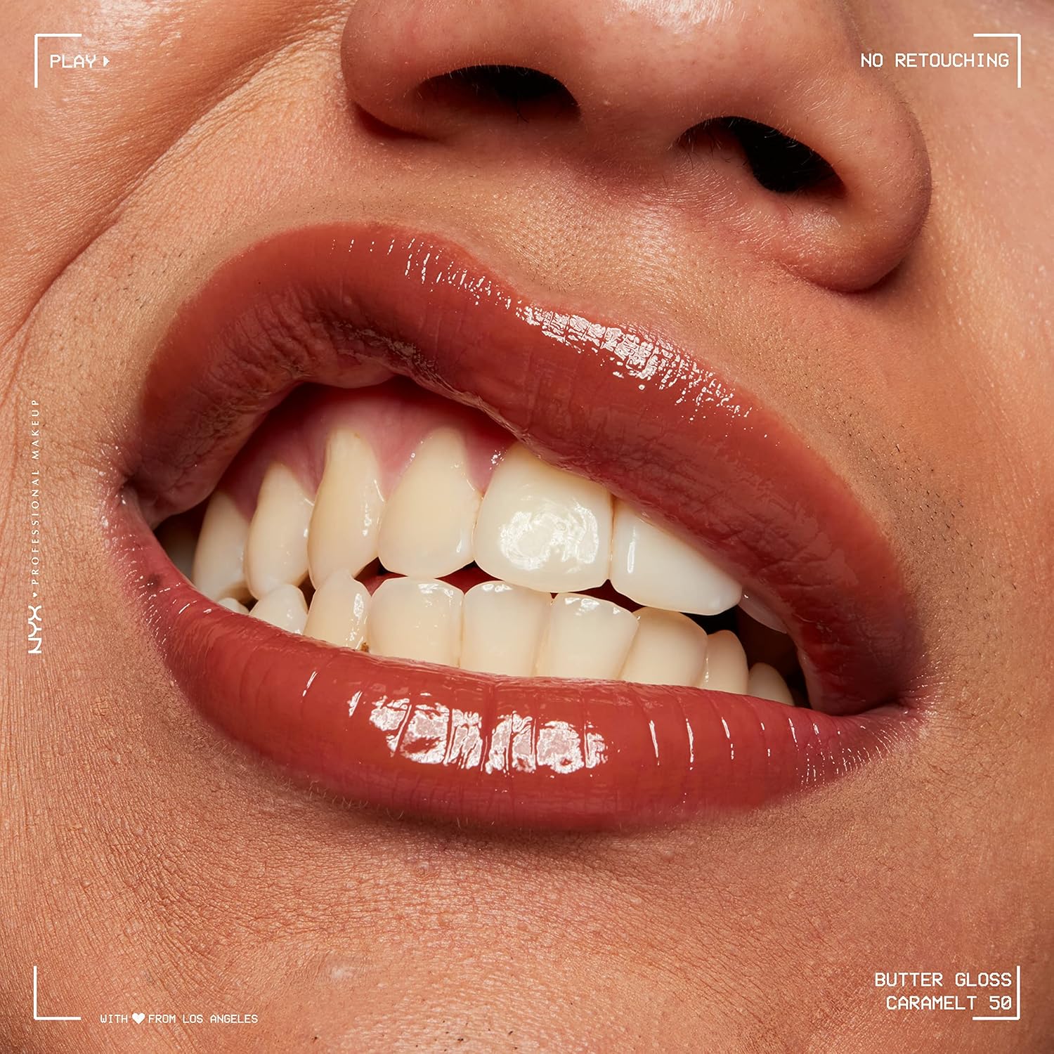 NYX PROFESSIONAL MAKEUP Butter Gloss Brown Sugar, Non-Sticky Lip Gloss - Caramelt (Medium Brown) (Pack of 2)