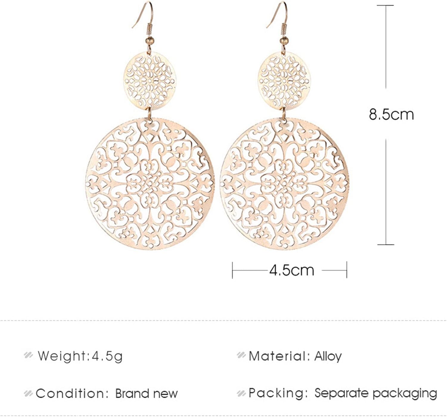 Filigree Hollow Disc Dangle Drop Earrings Boho Gold Ethnic Carved Flower Earrings Double Round Disc Drop Earrings Statement Hook Earrings Wedding Bridesmaid Jewelry for Women and Girls