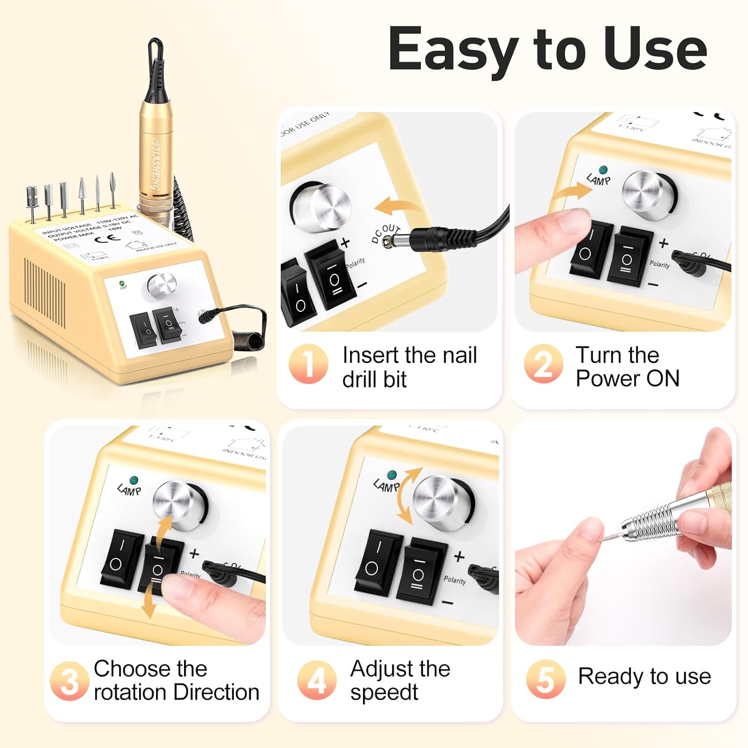 - Nail Drill: Jiasheng Nail Drill is powerful, speed up to 20000rpm, it emits less noise and heat than other drill, and the hand piece is small enough to fit in your hand, you won’t feel hand fatigue during your operation for polishing acrylic nails