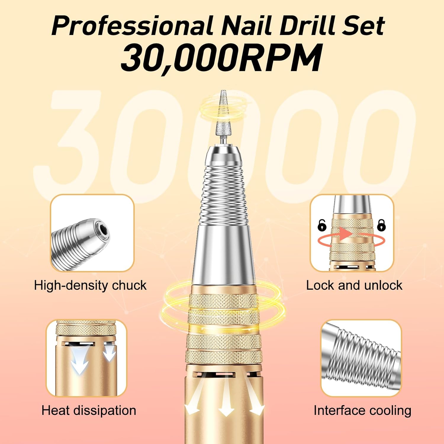 Jiasheng Electric Nail Drill, 30000rpm Professional Nail Drill Machine, Nail Drills for Acrylic Nails Professional Manicure Pedicure Kit for Woman