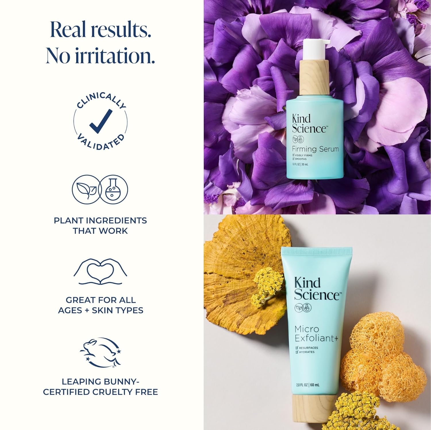 Kind Science by Ellen DeGeneres 2-Piece Skin Care Set with Micro Exfoliant & Firming Face Serum - Hyaluronic Acid Serum & Exfoliating Face Wash