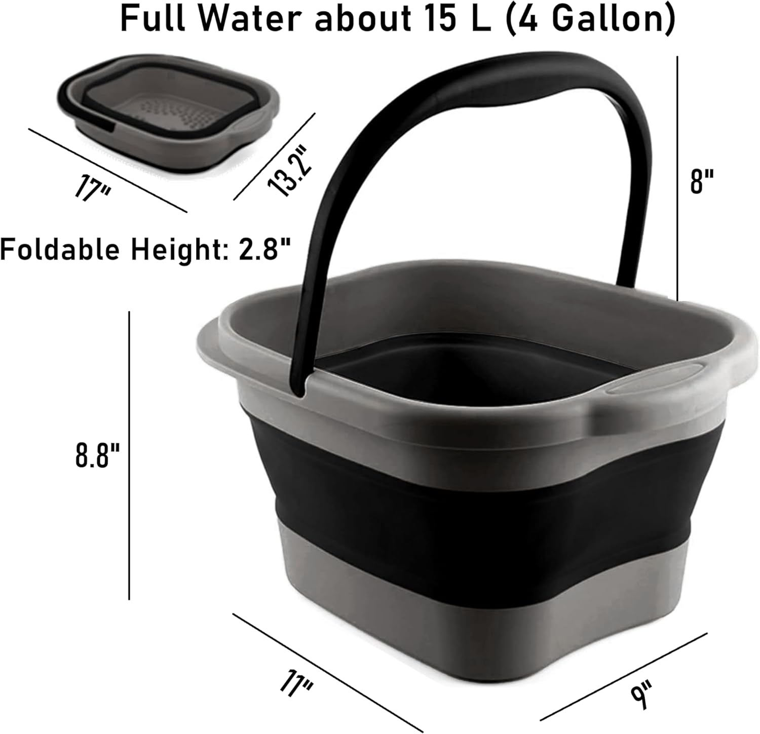 - COLLAPSIBLE PEDICURE FOOT BATH: Not like traditional foot bath basin as big and heavy. Our basin tub folds up into portable size and opens up into a bucket. Light weight and compact size when folding. Foldable size is about 17X13.2X2.8 inches, weight is about 1.4 lbs. Easy to pack, store or dry after soaking your feet.