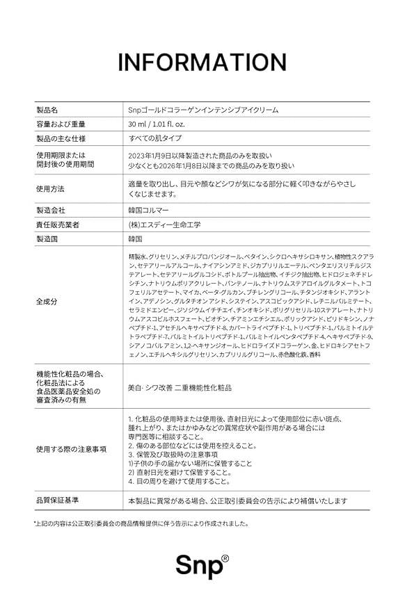 SNP Gold Collagen Intensive Eye Cream