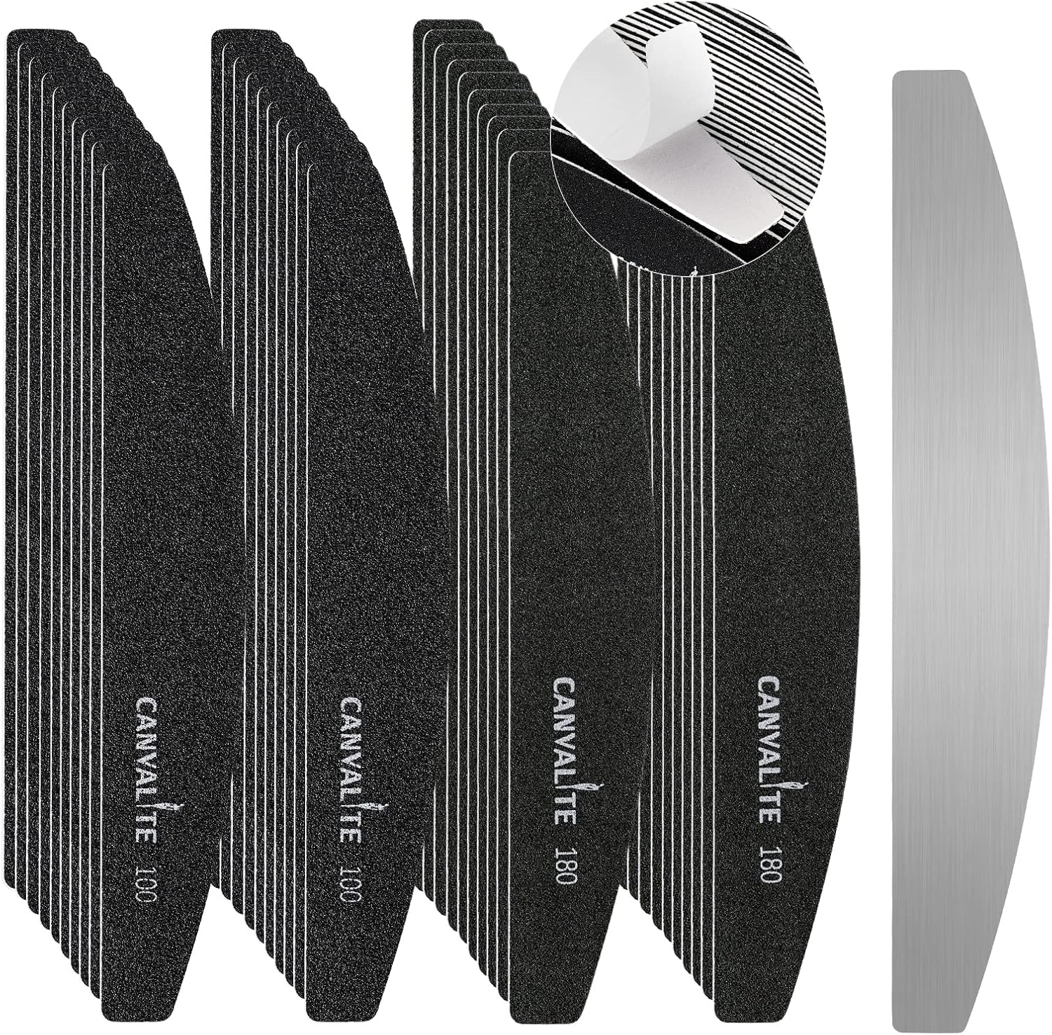 Canvalite 40 PCS Nail File Reusable Peel and Stick Nail Files Replaceable Emery Boards Nail File for Natural Nails Professional 240 Grit Fingernail Files for DIY Salon Use