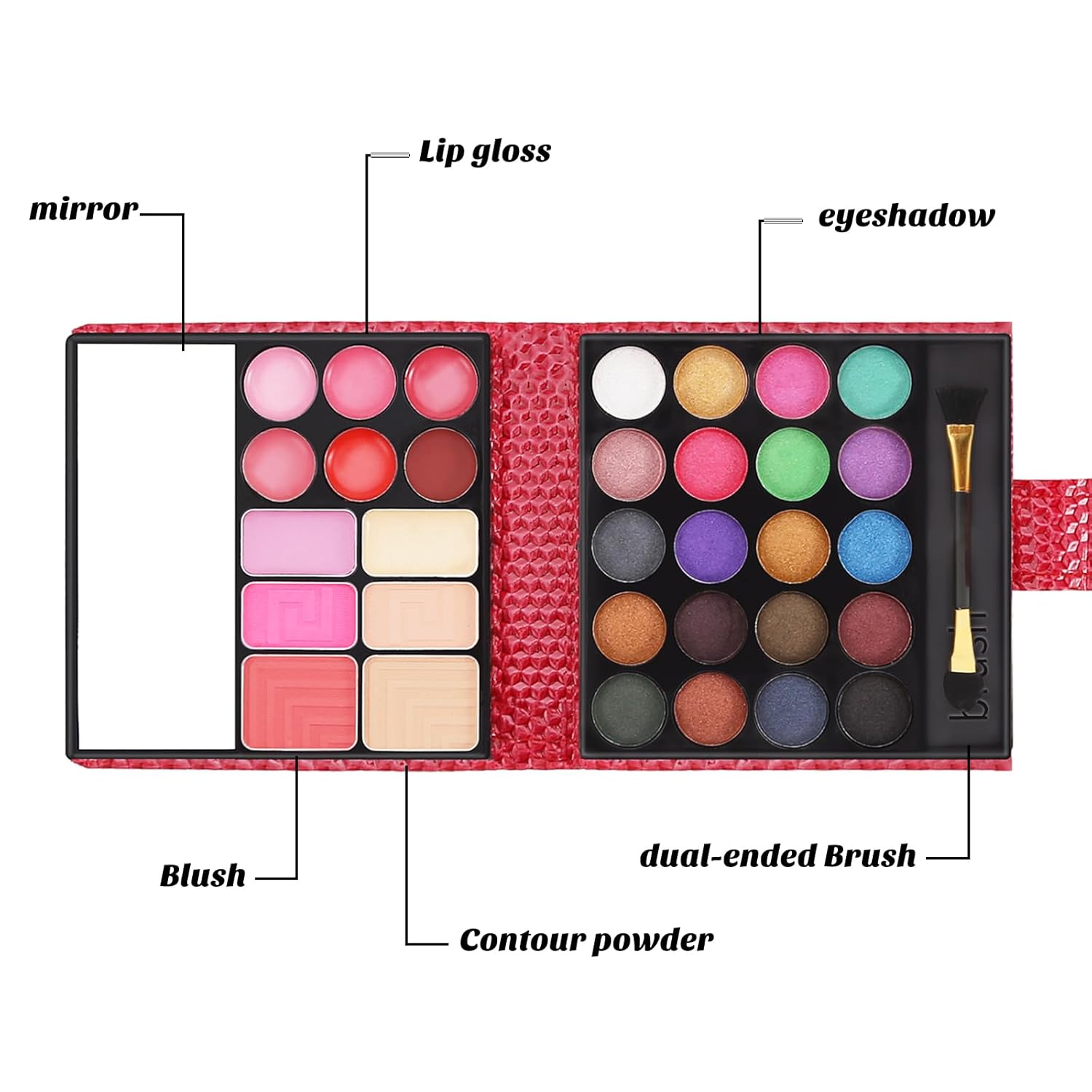 Boobeen All in 1 Makeup Palette kit - Colorful Eye Shadow Palette, Lip Gloss, Blush and Contour Powder to Define Face Shape, with Mirror&Brush, Make Up Gift for Women