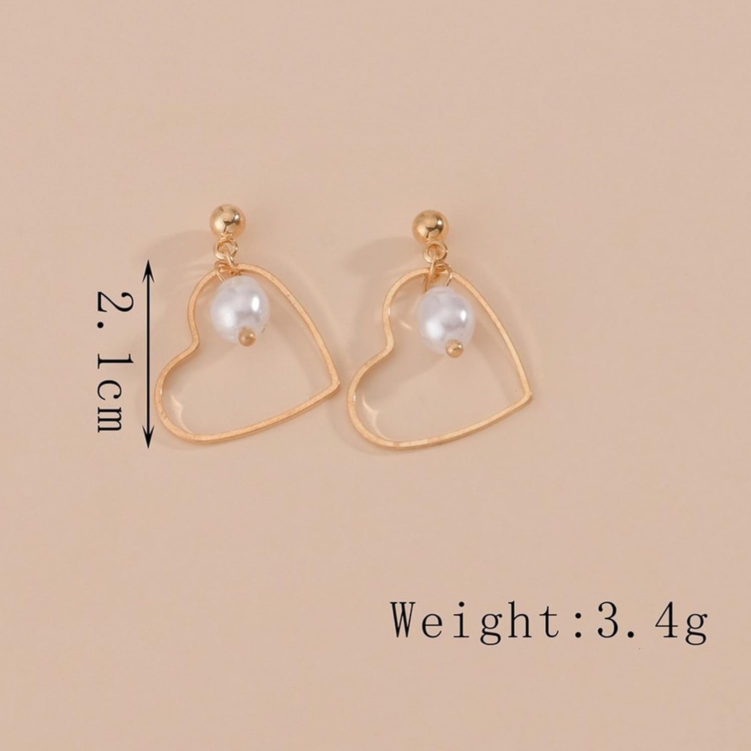 Boho Tiny Pearl Heart Drop Earrings Vintage Gold Hollow Heart Dangle Earrings Statement Faux Pearl Heart Hoop Earrings Jewelry for Women